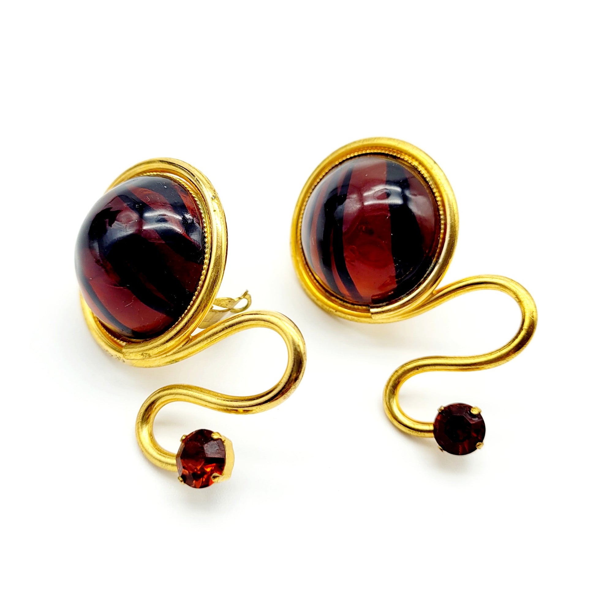 Boucles d'oreilles cabochon verre vintage couture Nina Ricci