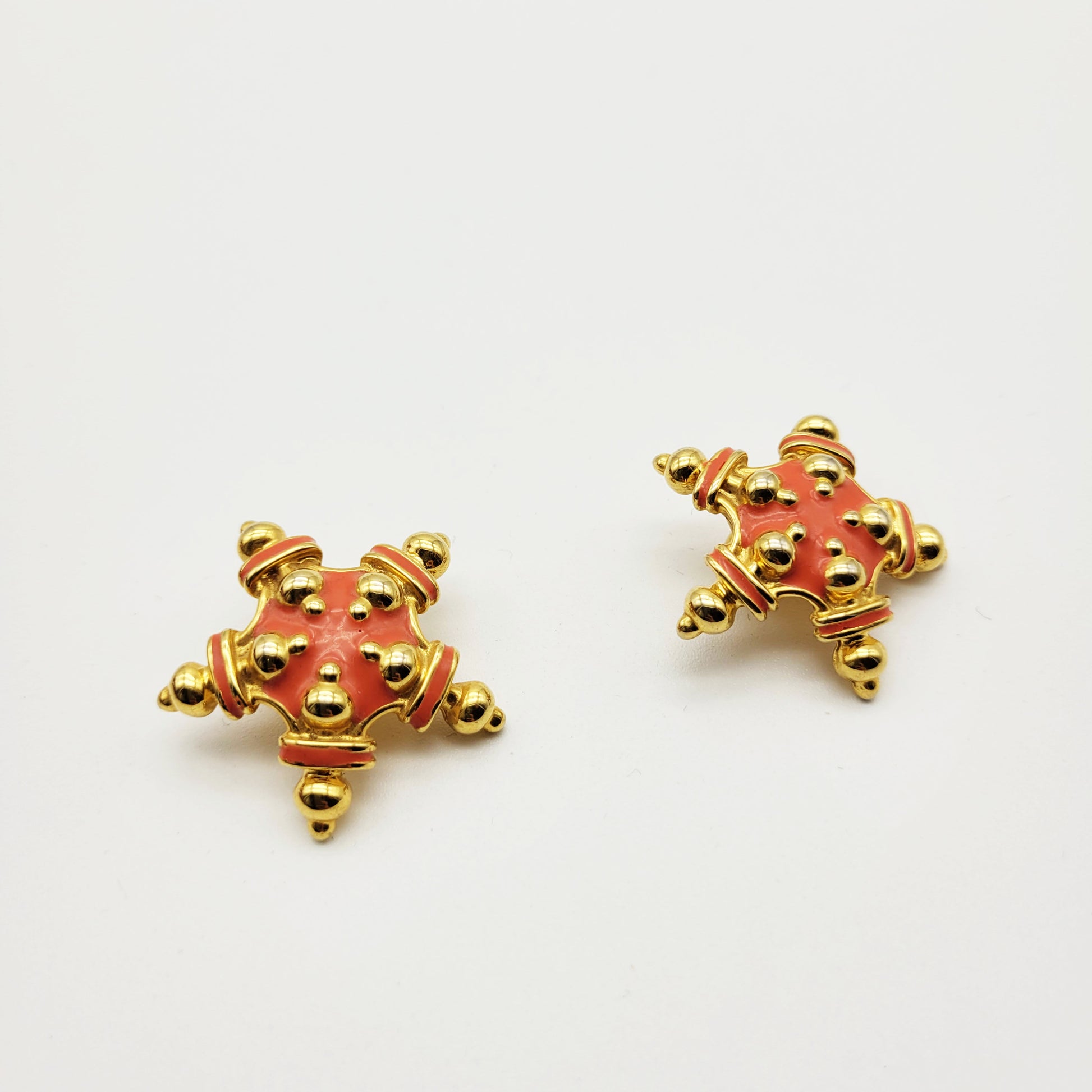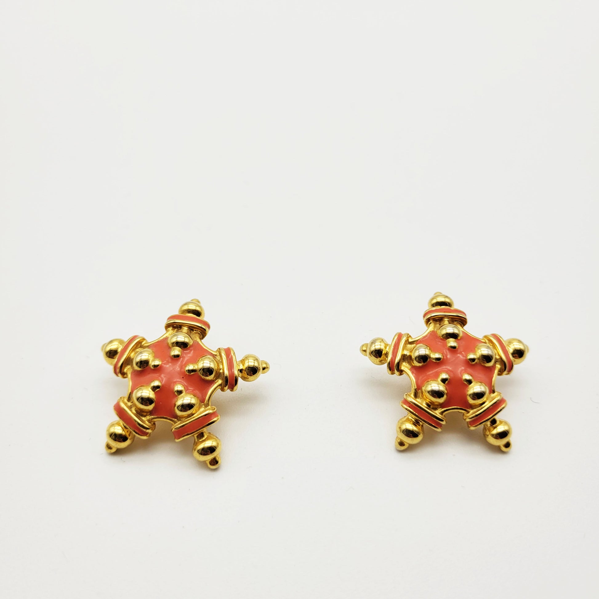 Check out these cute vintage star earrings in goldtone metal and bright orange color.