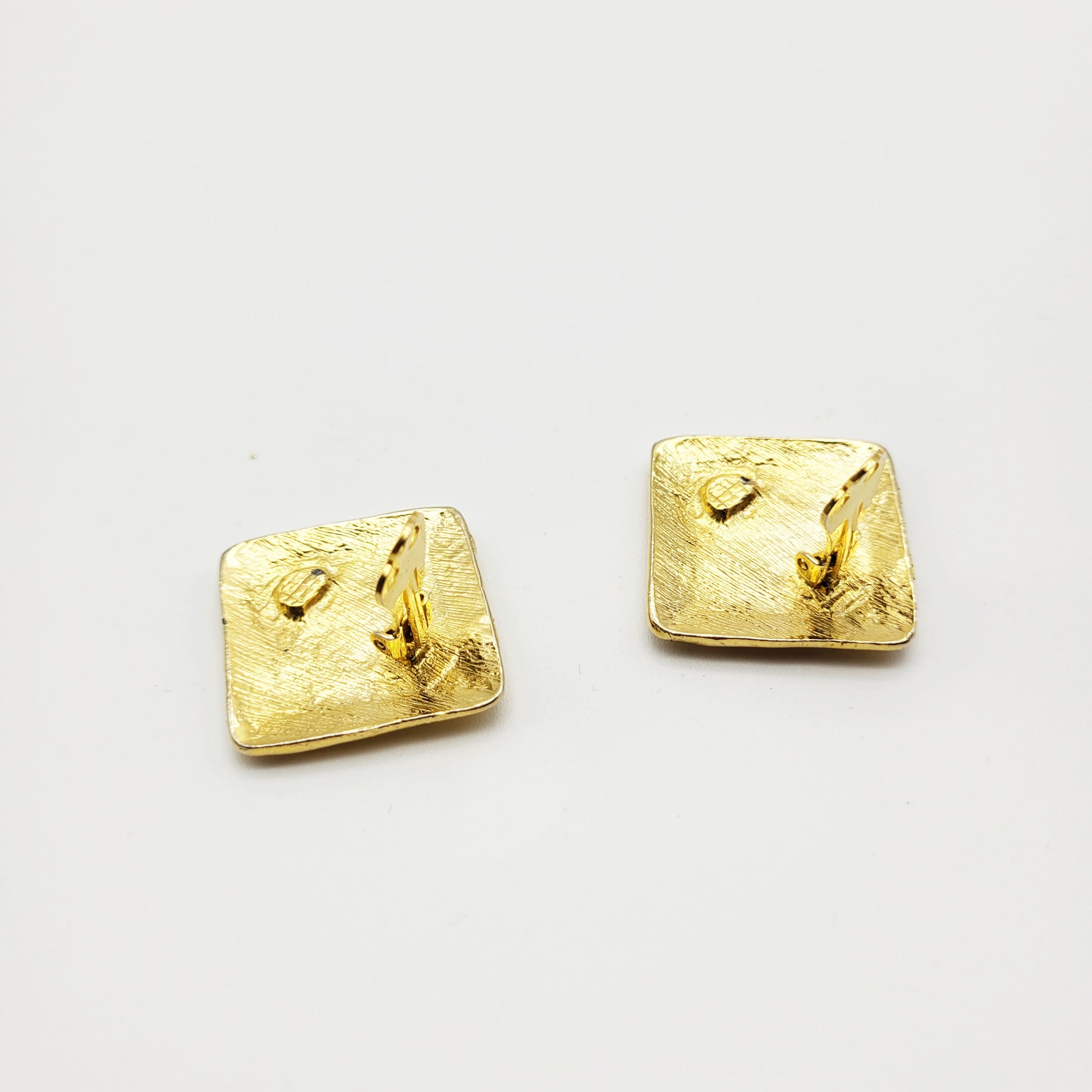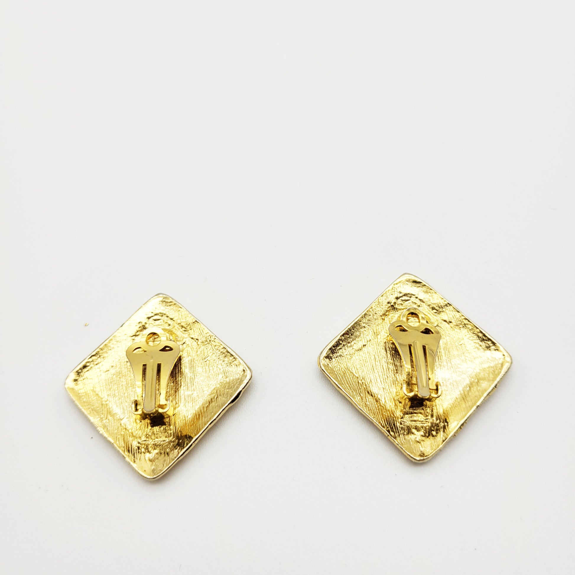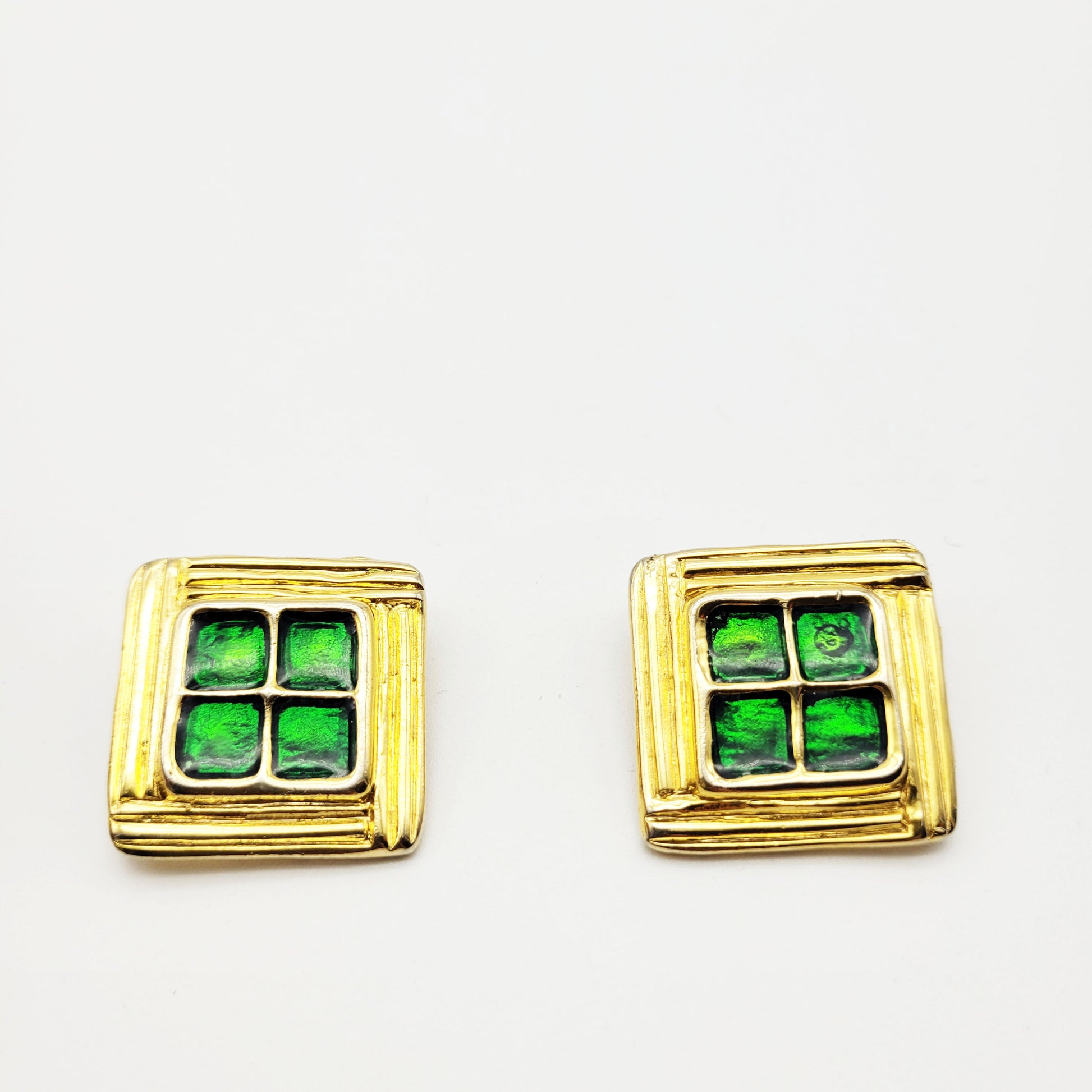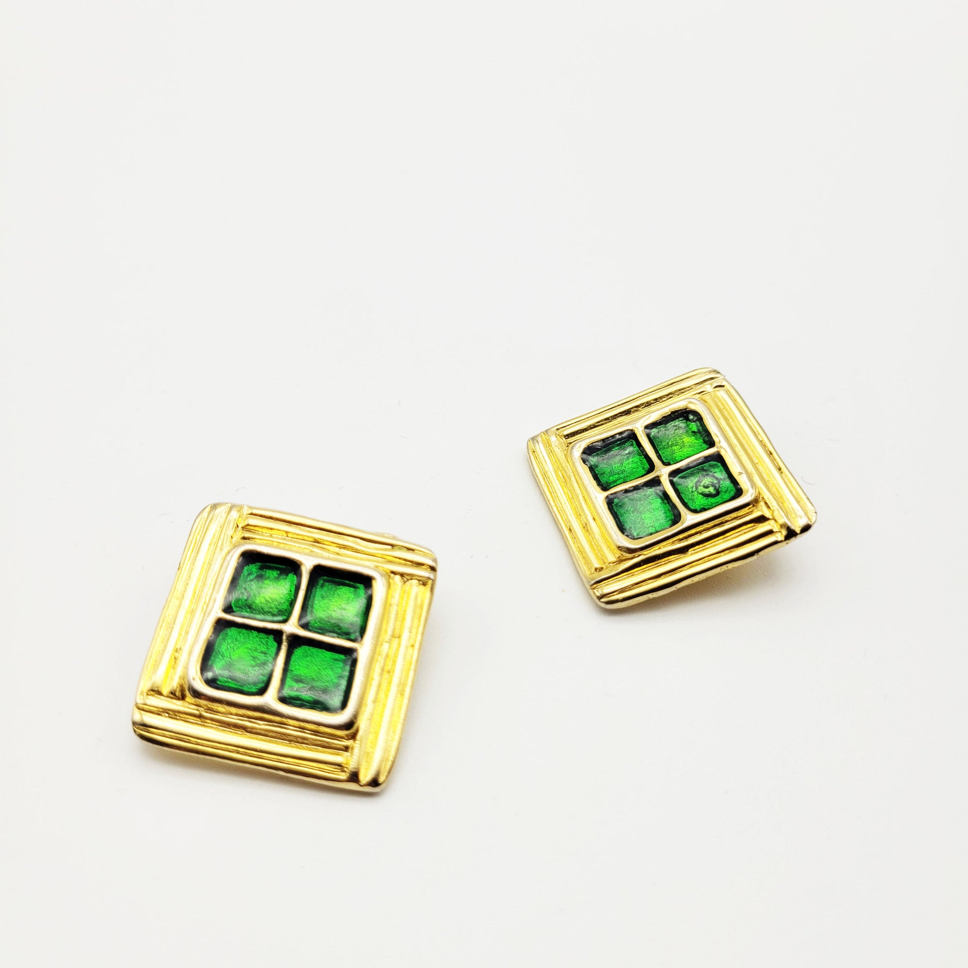 These vintage green enamel clip on earrings in goldtone metal are a perfect choice for any vintage lovers that want to stand out.