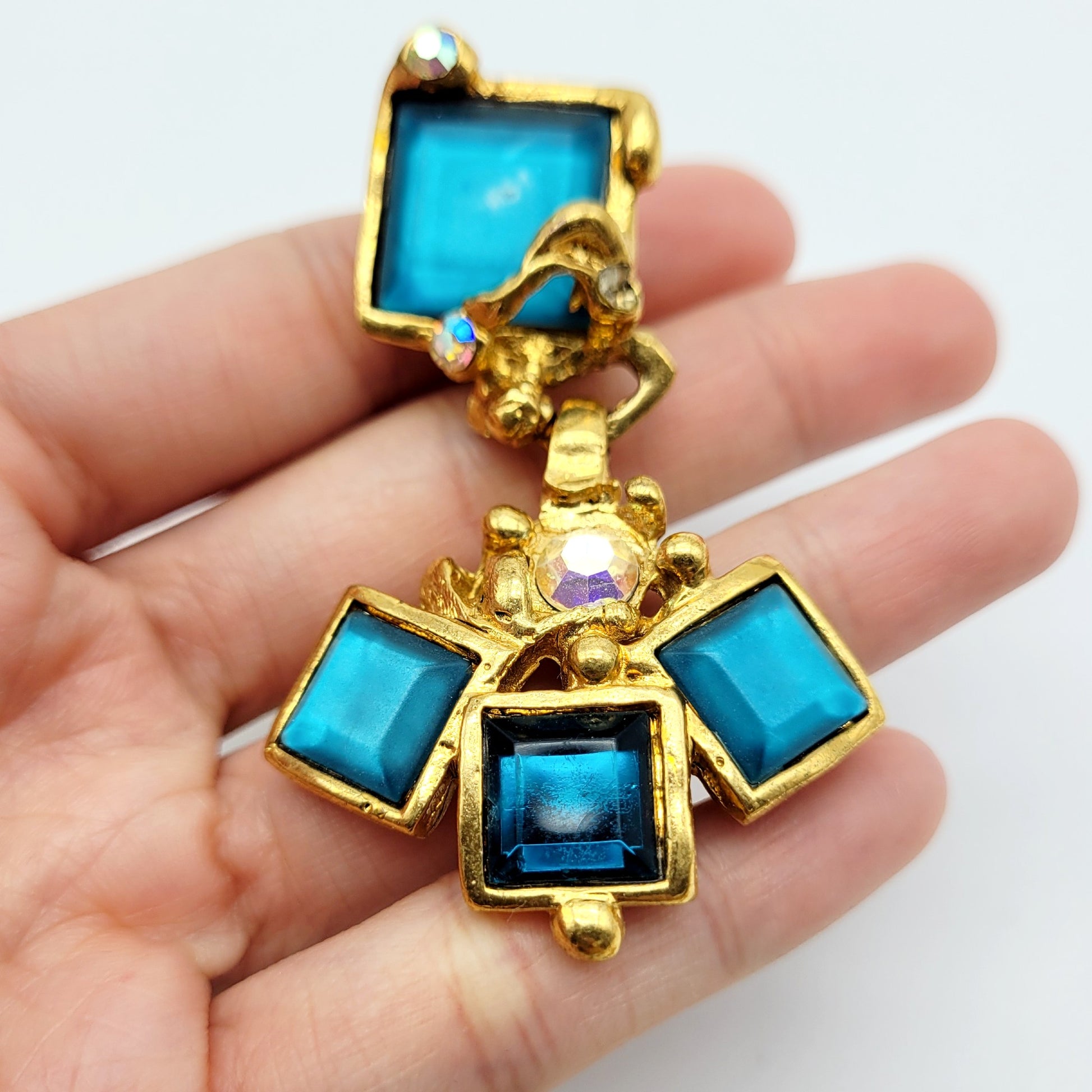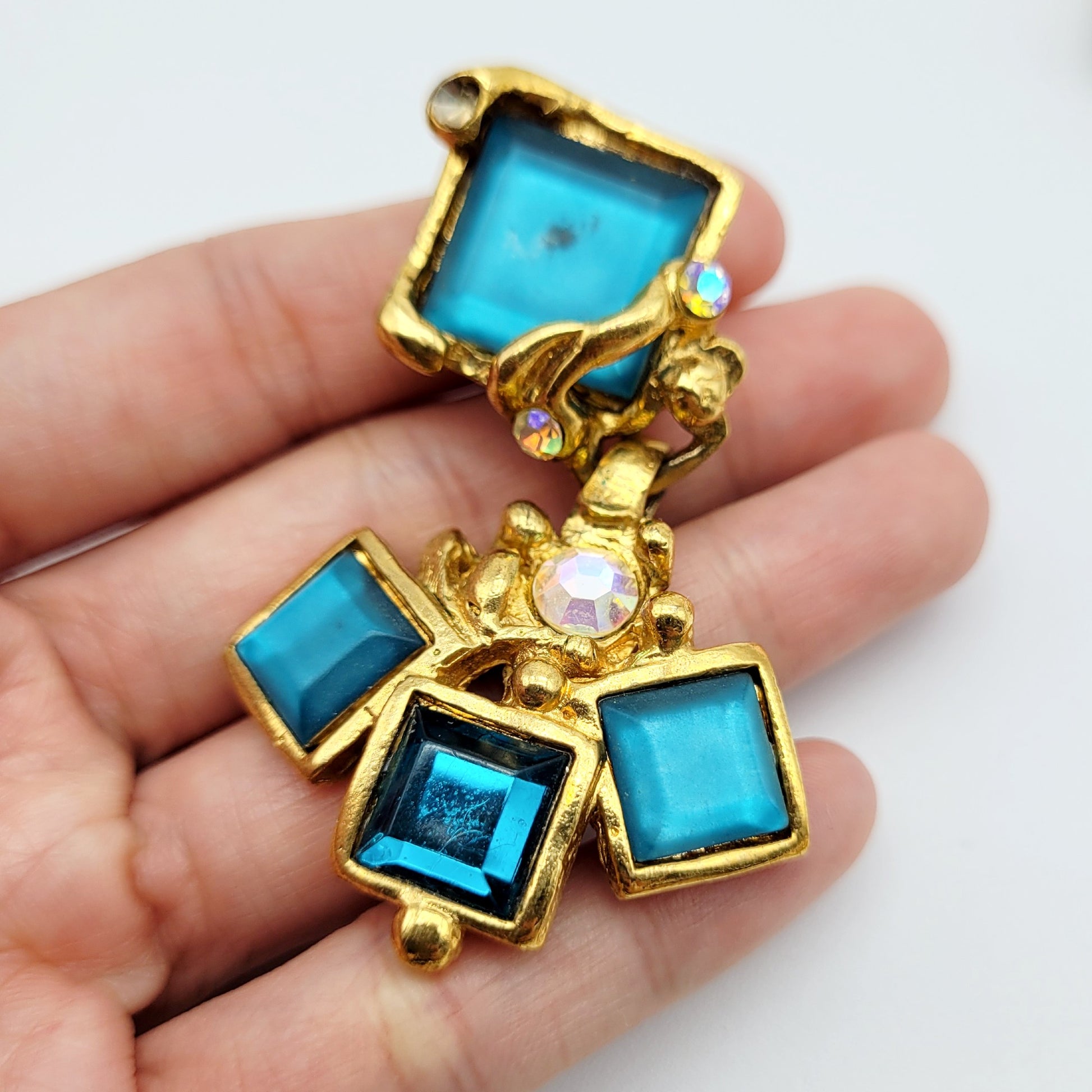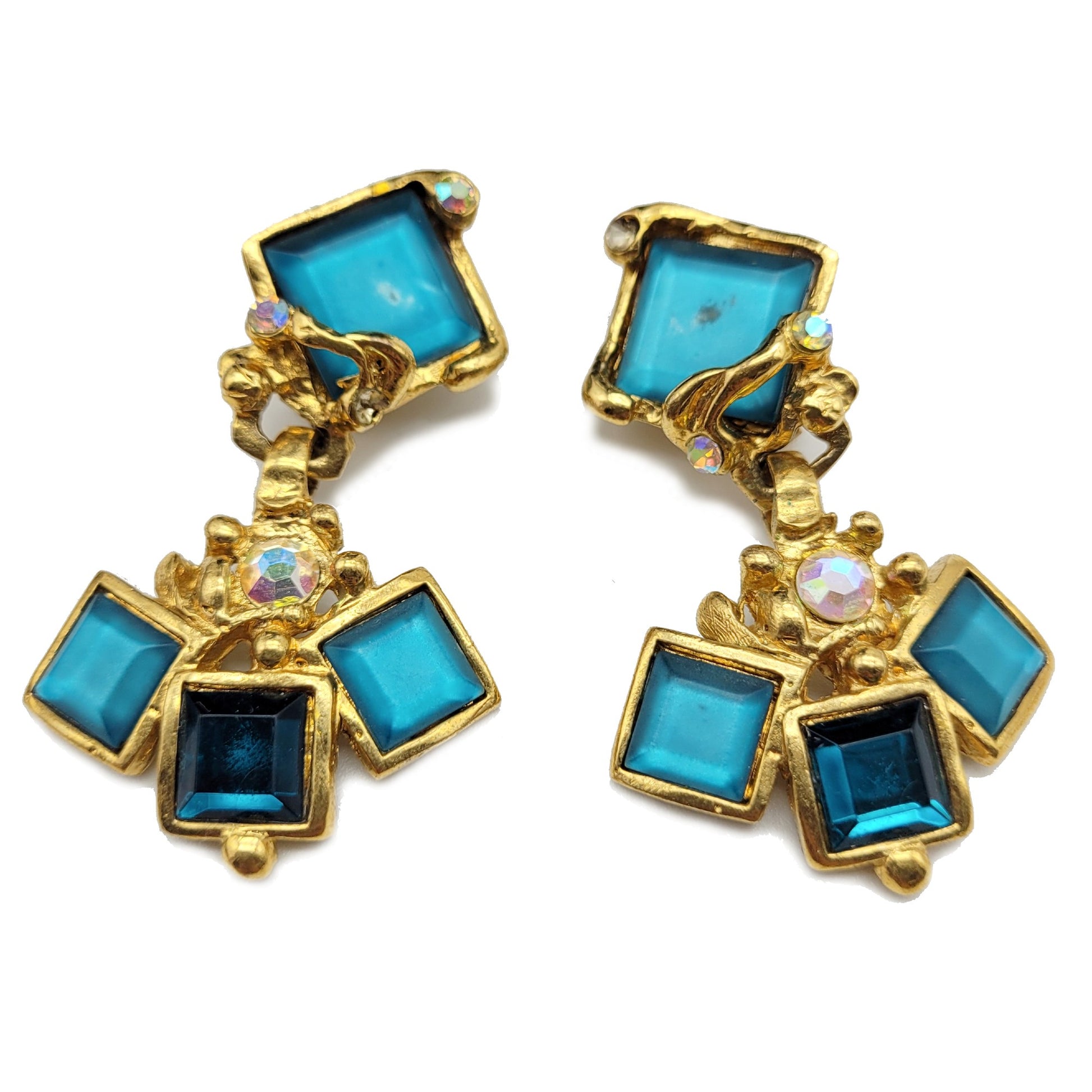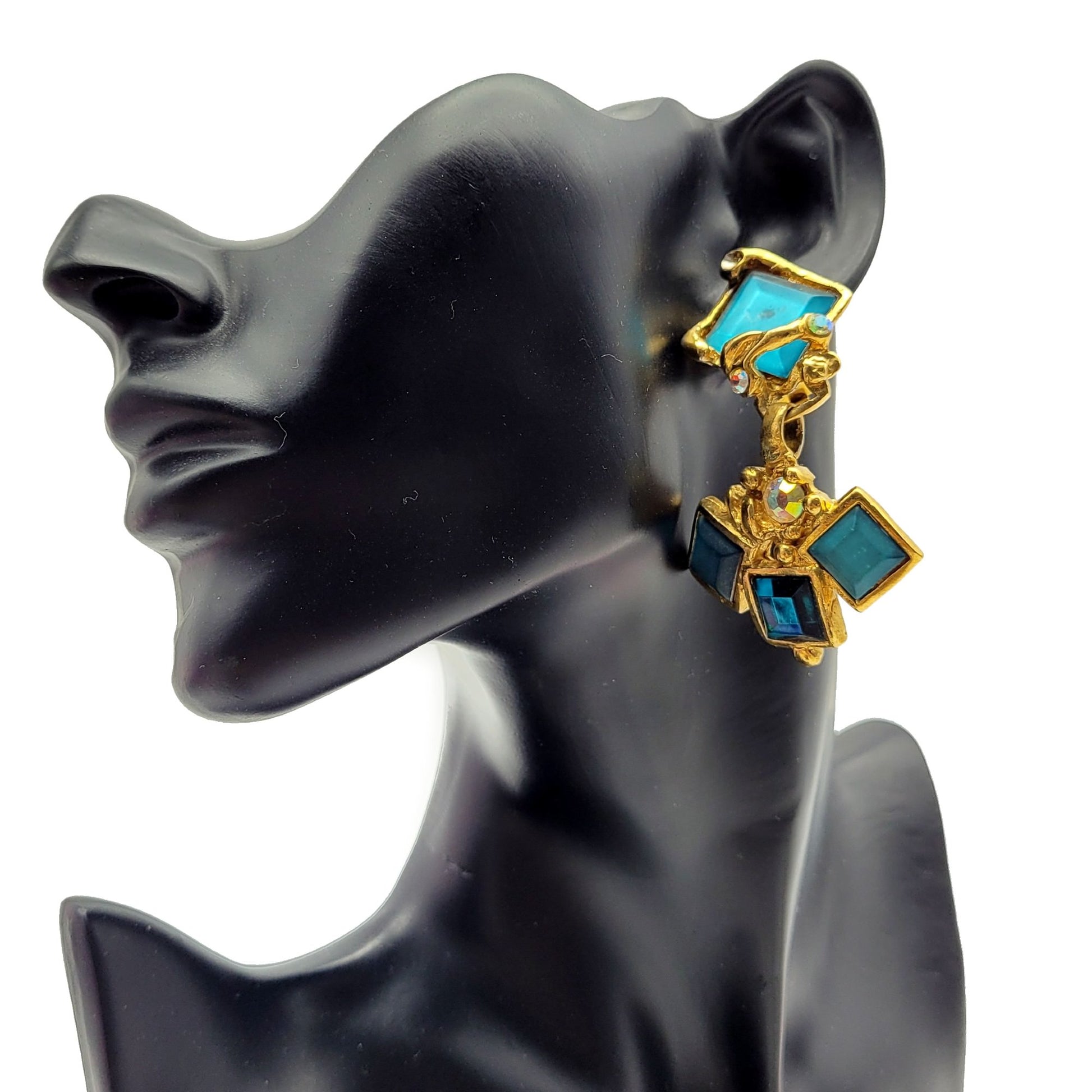 100% authentic french vintage Micris turquoise dangle earrings with a sophisticated design