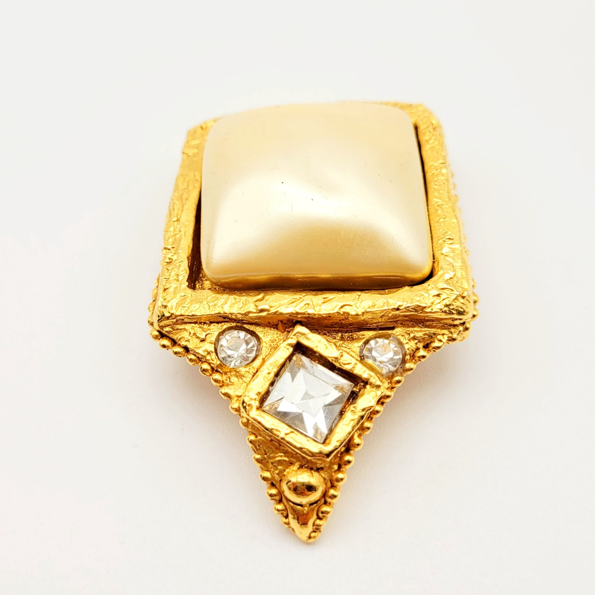 Material: Gold-tone metal, rhinestones, crystal, resin, and faux pearl
