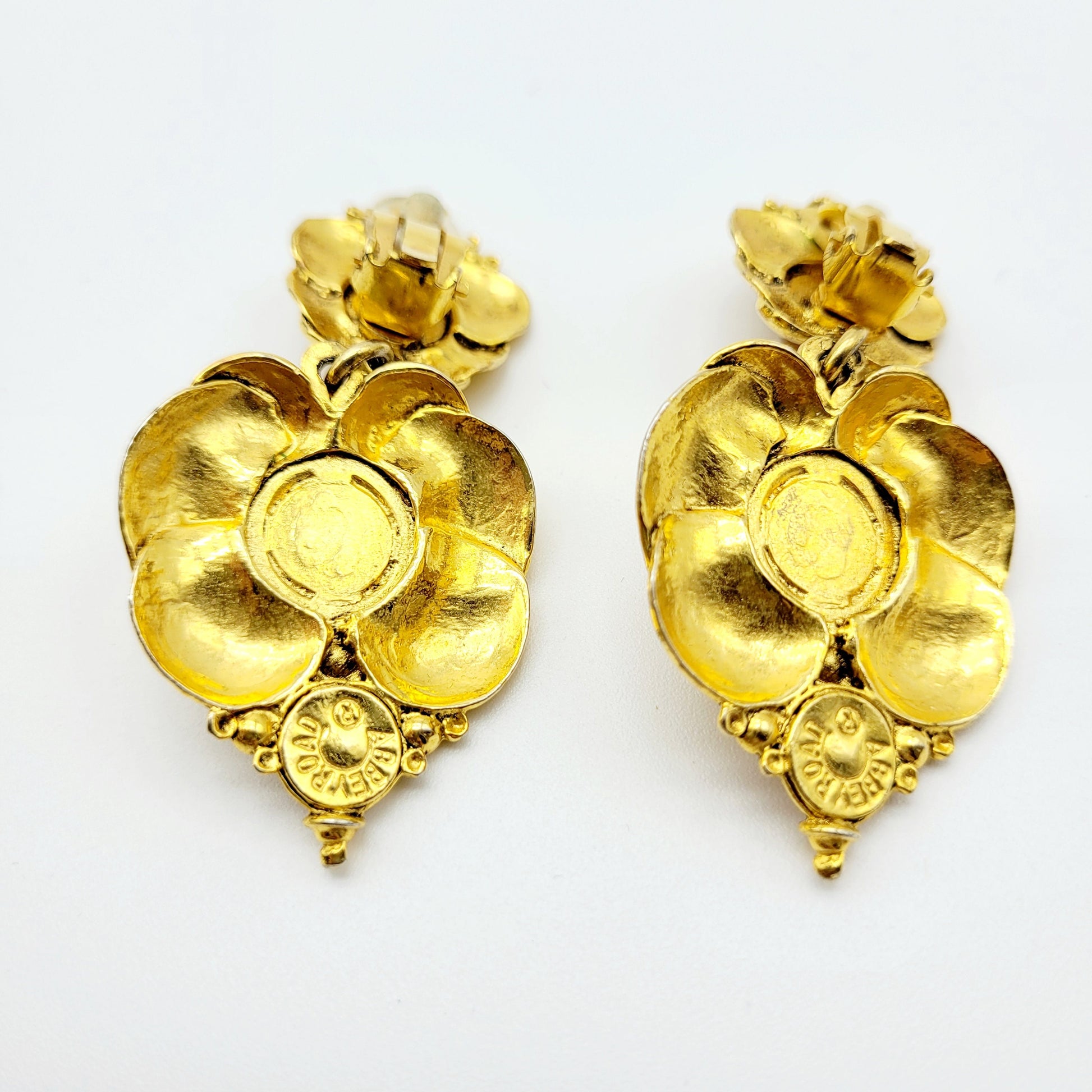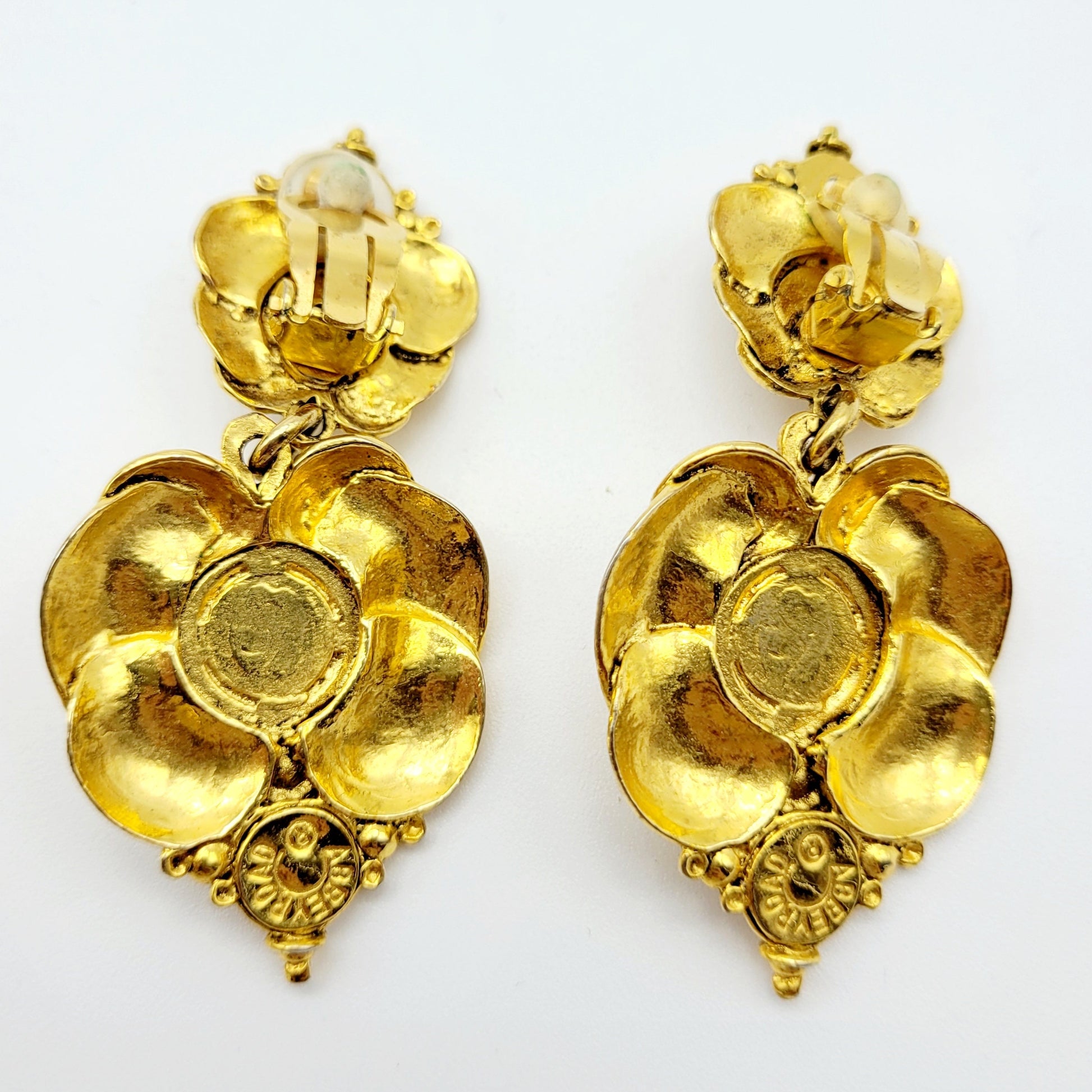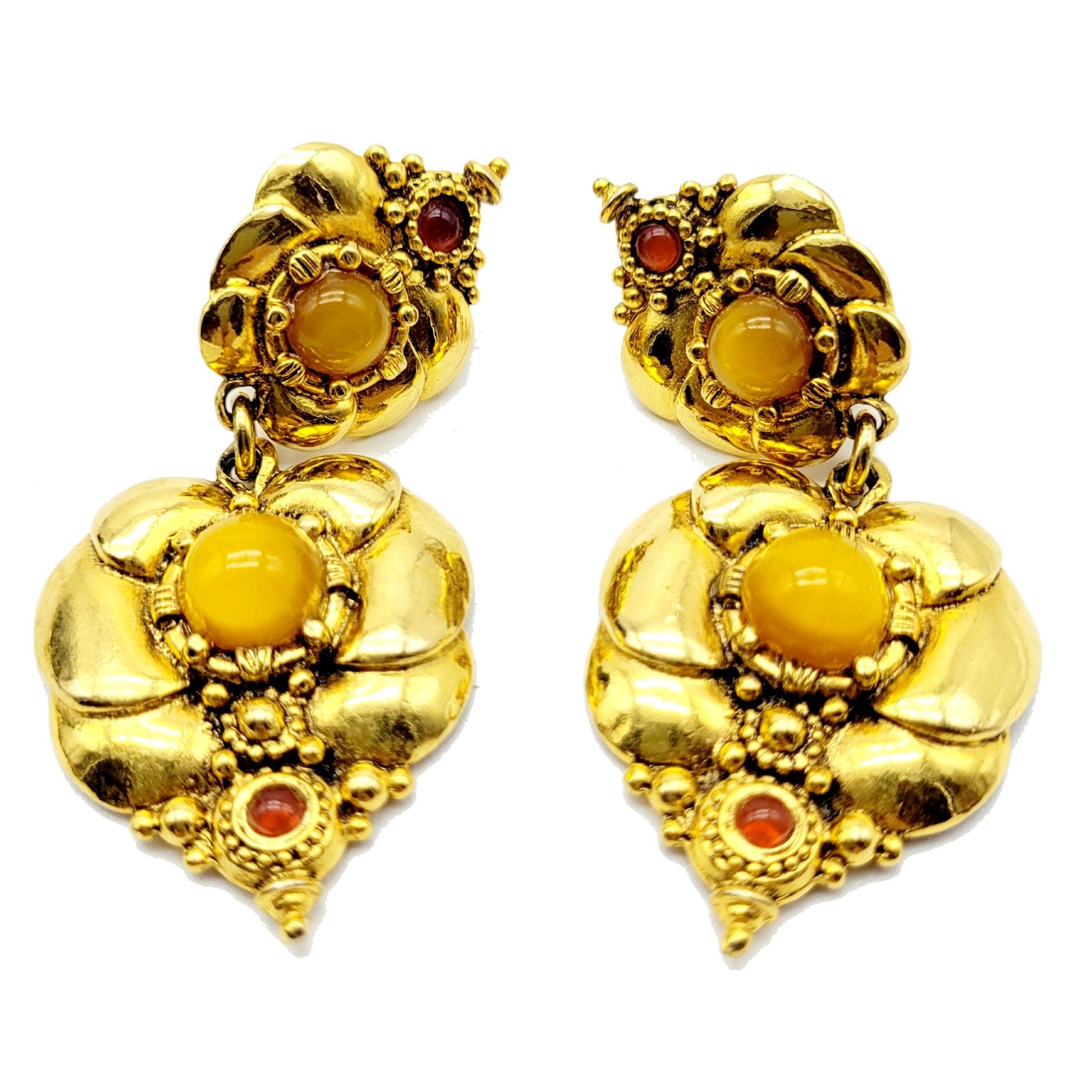 Check out these exquisite vintage dangle earrings! They are crafted in a nice goldtone finish. These French designer earrings feature intricate design work for a truly unique look. They are the perfect finishing touch to any outfit. If you love collecting collectible jewelry, these unique earrings will be a nice addition. They will surely turn heads and make you proud.