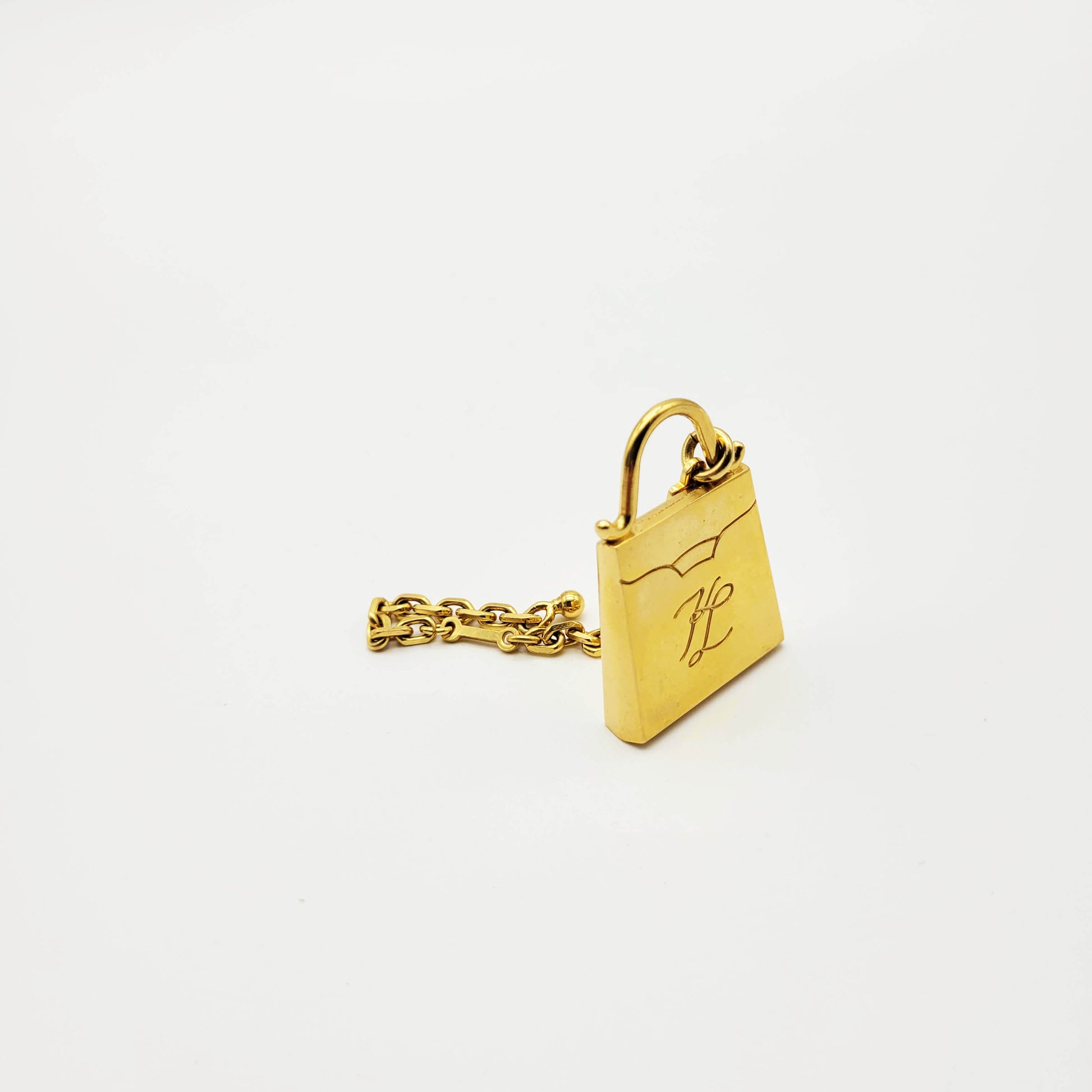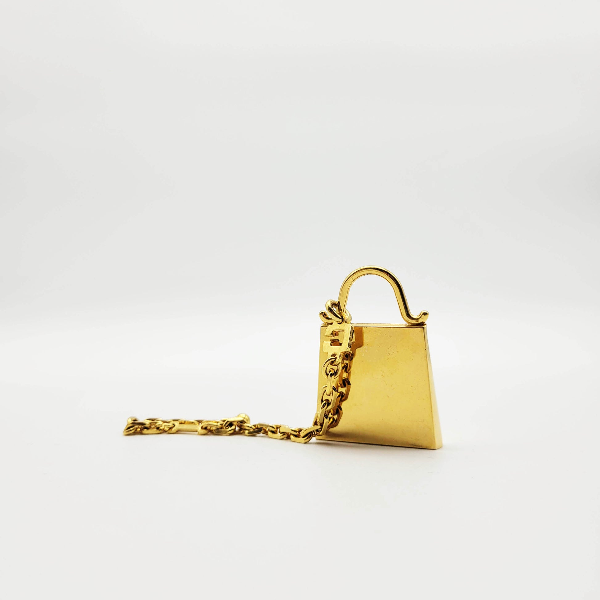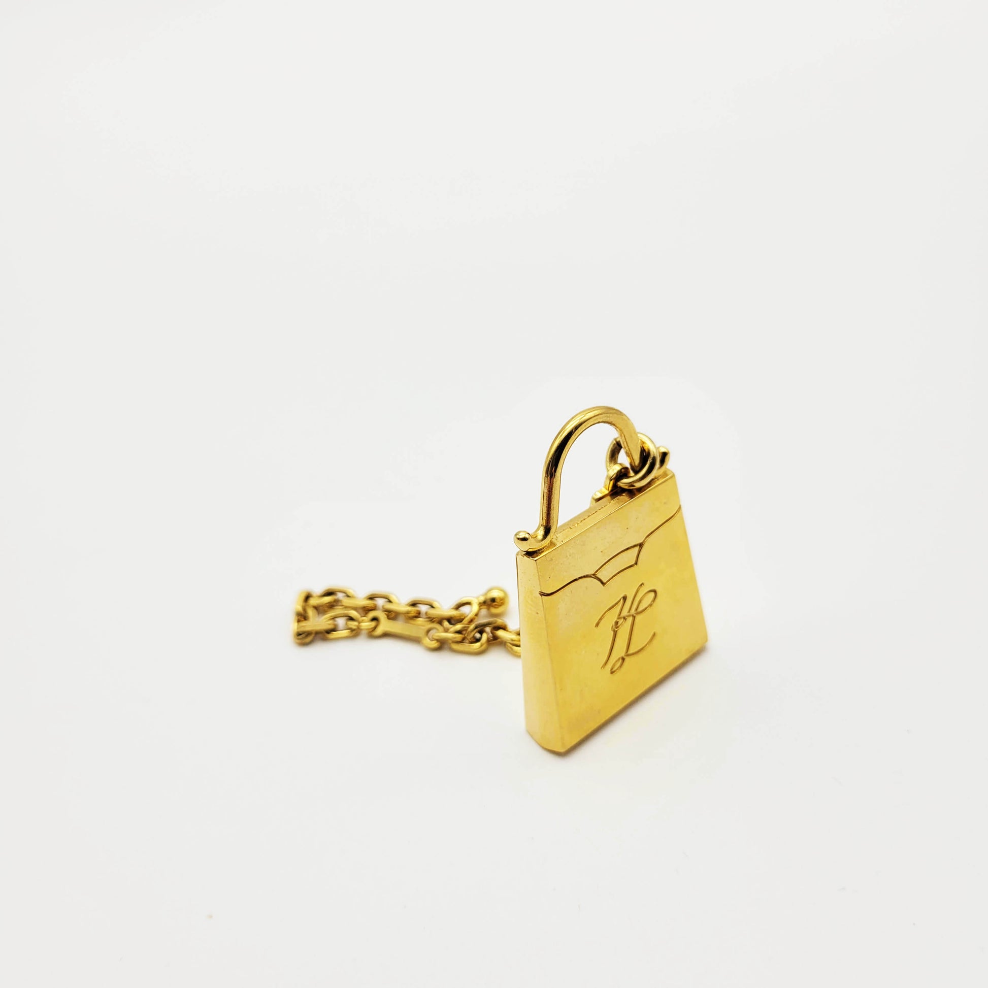This unique accessory from Karl Lagerfeld features the iconic logo of the brand as well as their iconic bag. You can use it as a key chain or an extra for your lovely handbag.