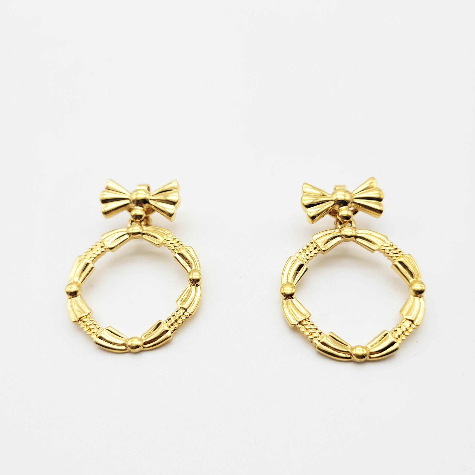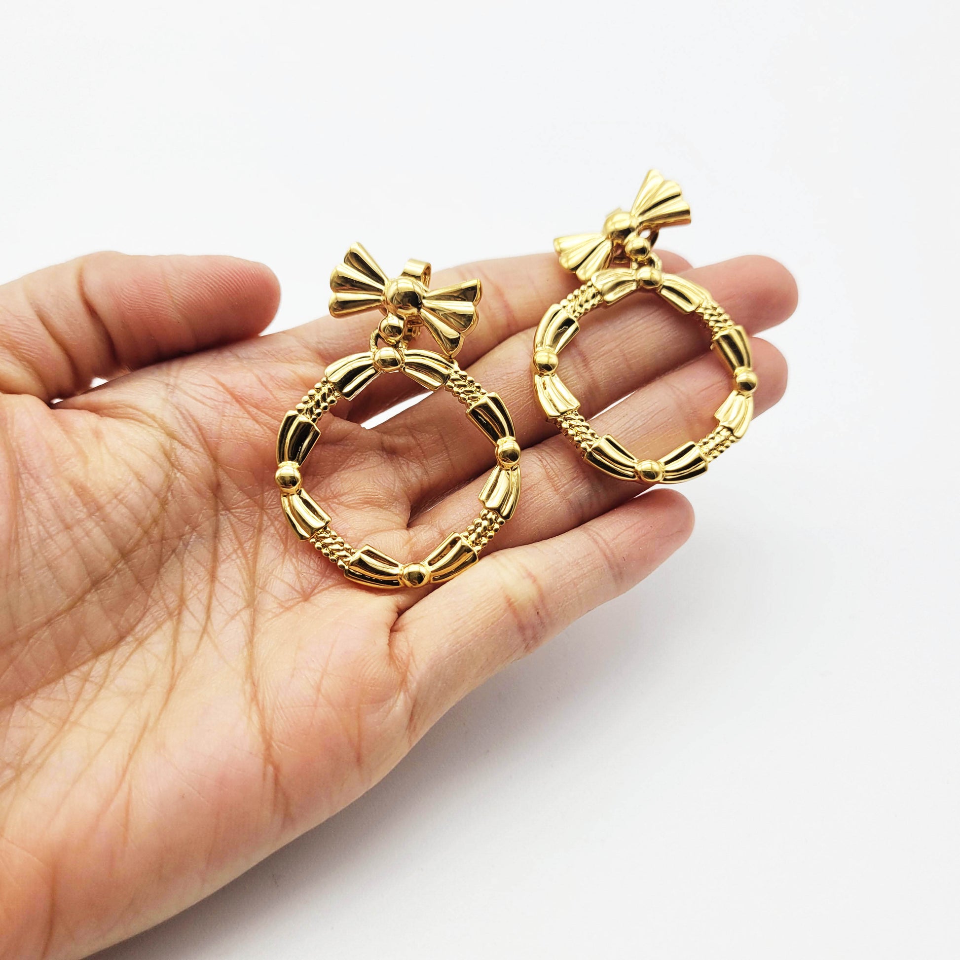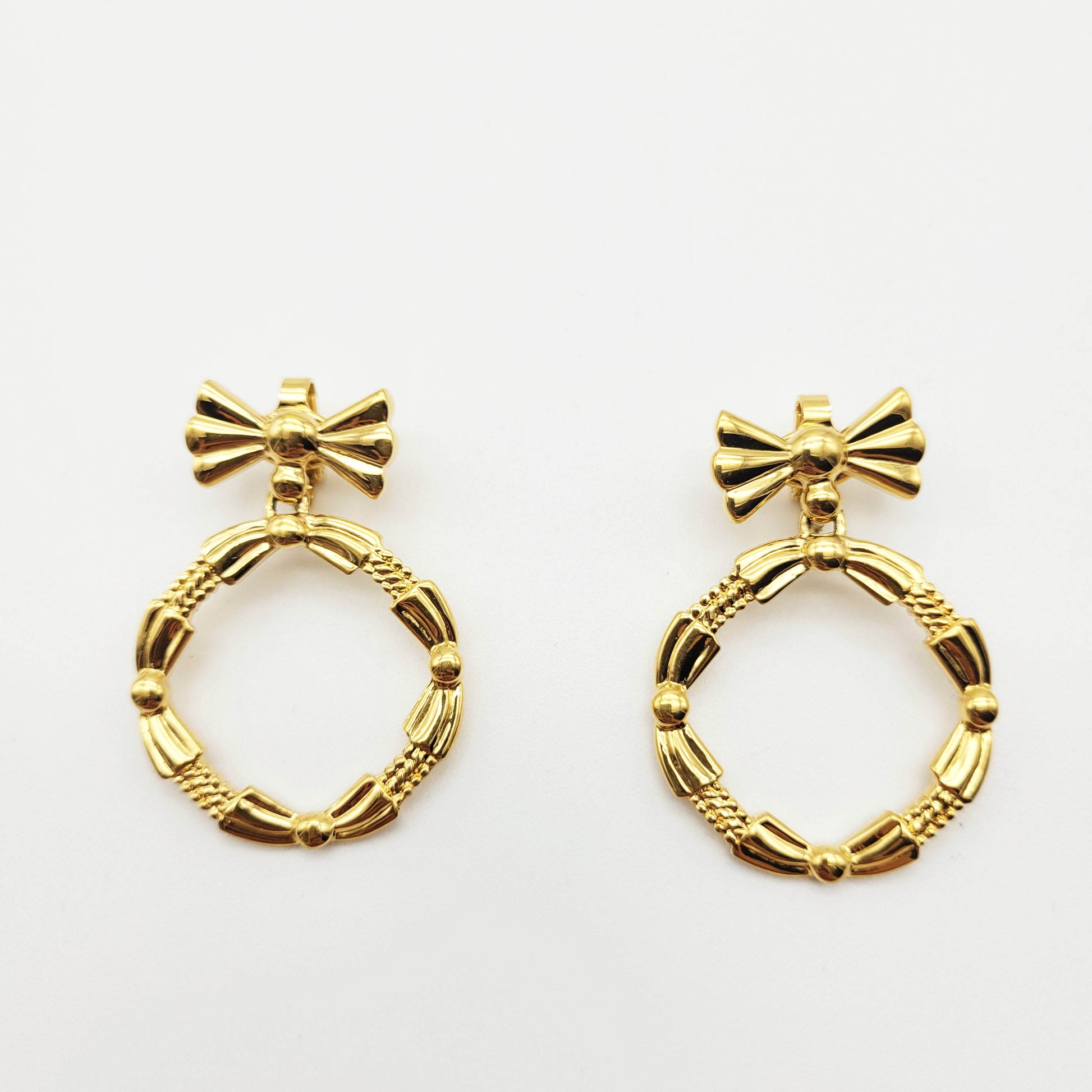 Timeless vintage bow dangle earrings from Nina Ricci. These unique earrings have a minimalist design that can go with any outfit. Add them now to your vintage jewelry collection!