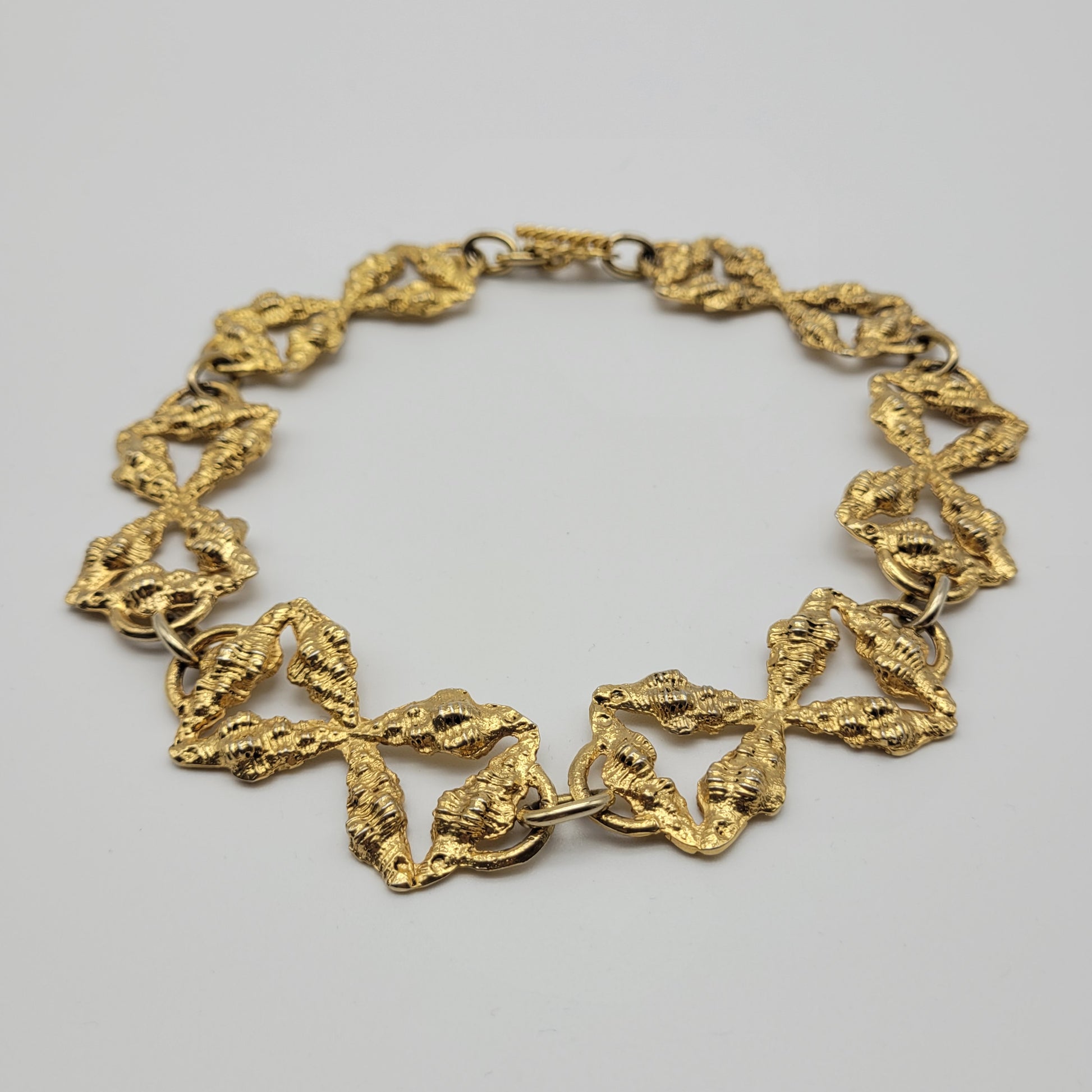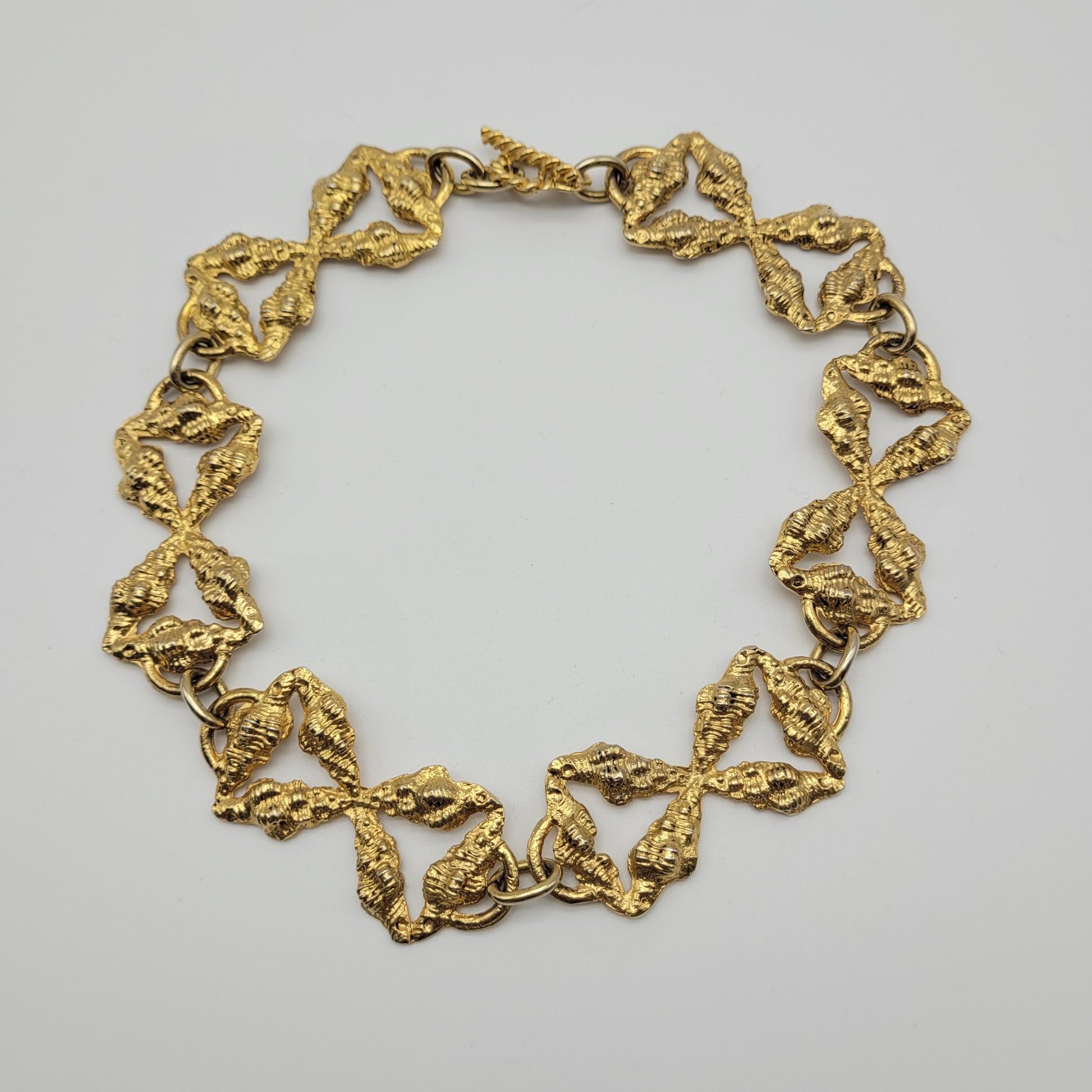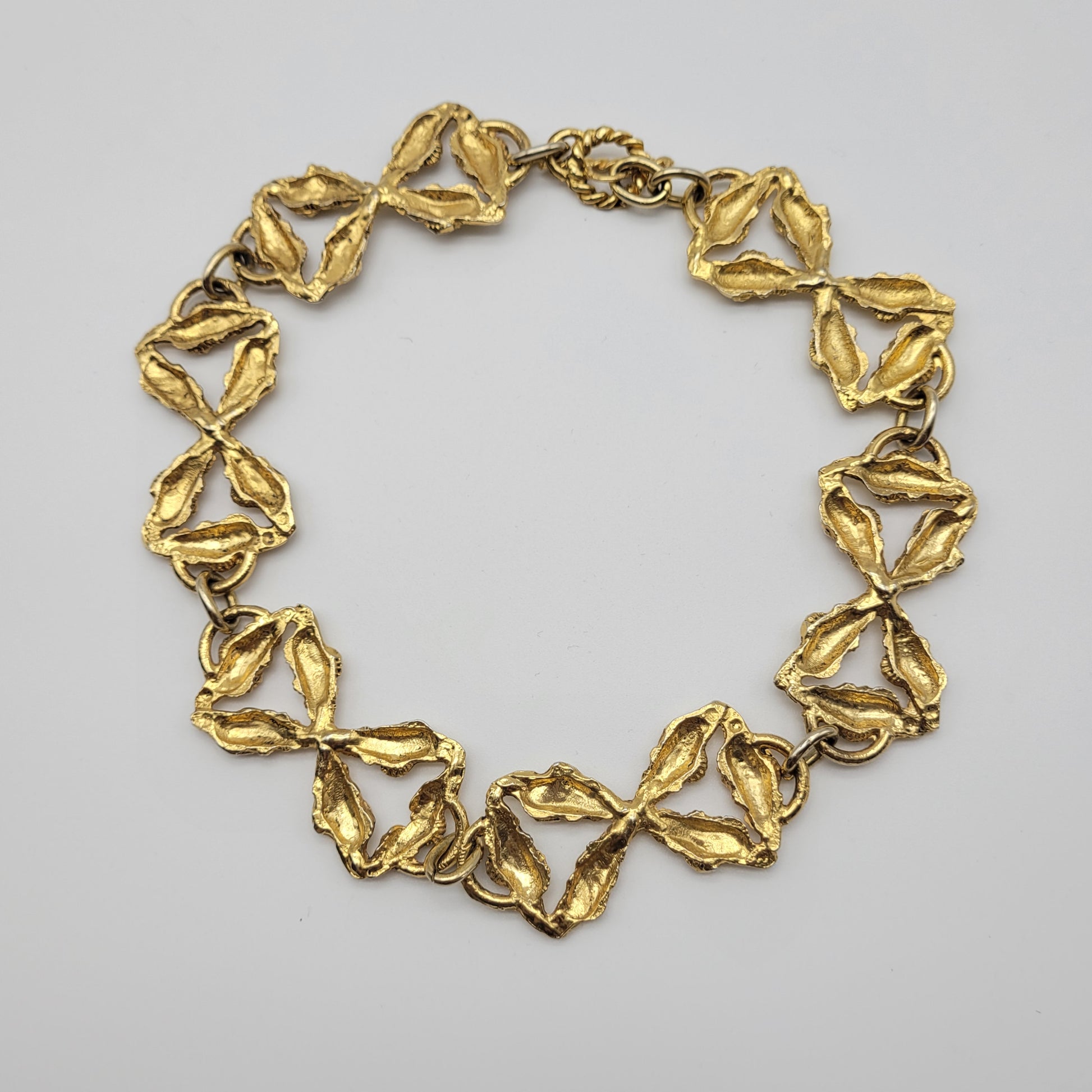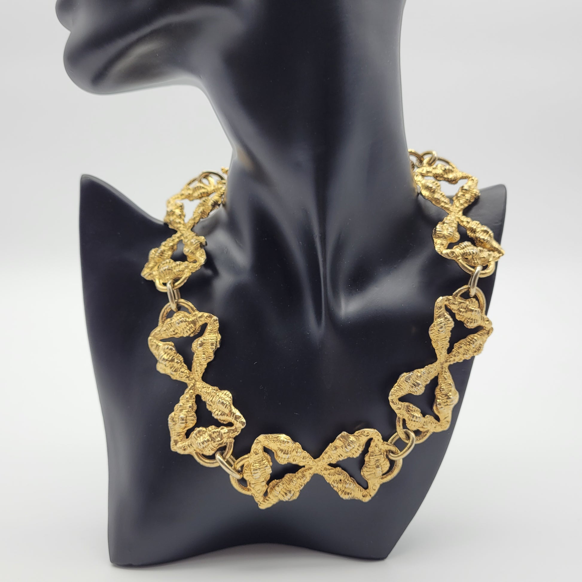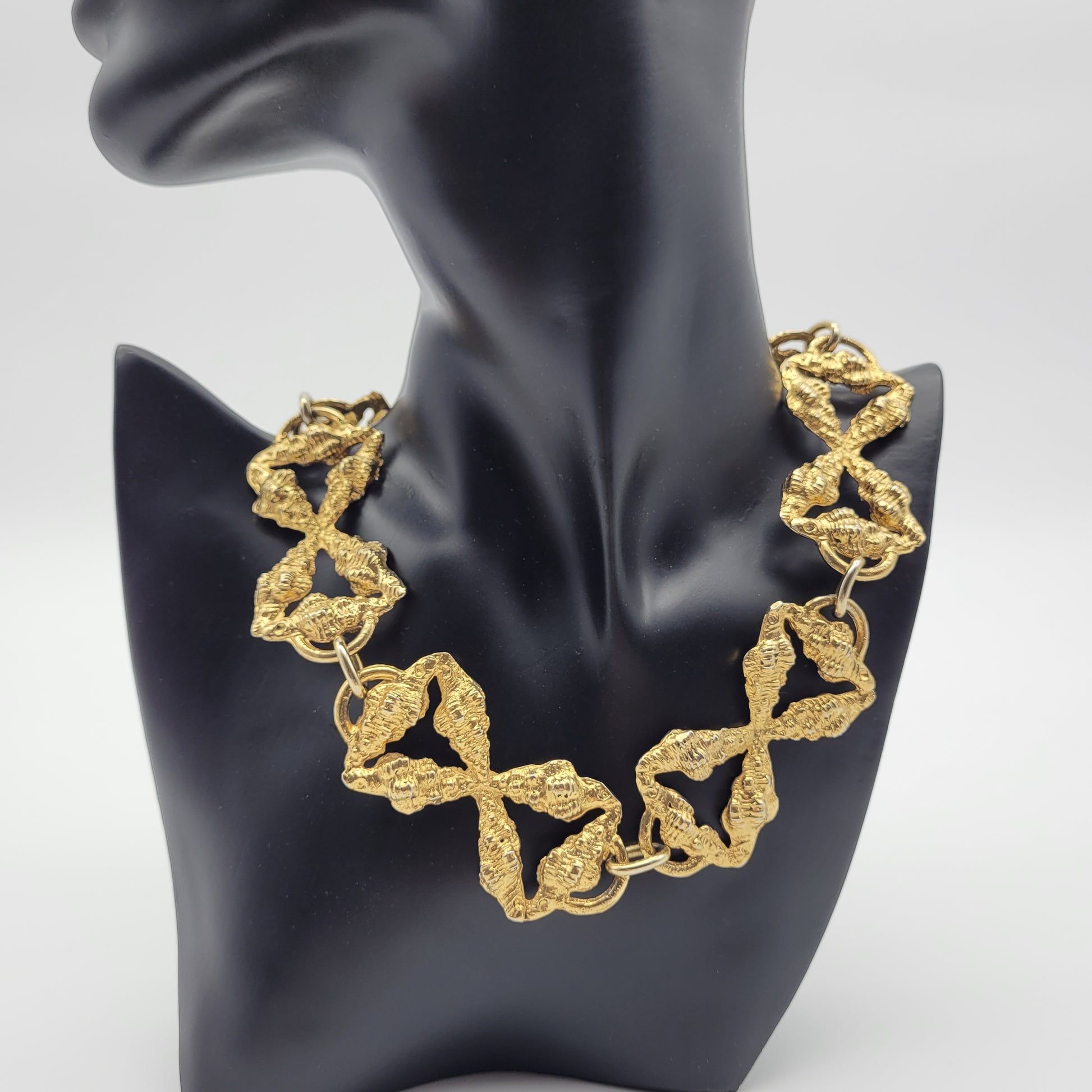 This unique necklace features a bow chain design, crafted in a goldtone metal that is both elegant and timeless. The total length measures approximately 48 cm.