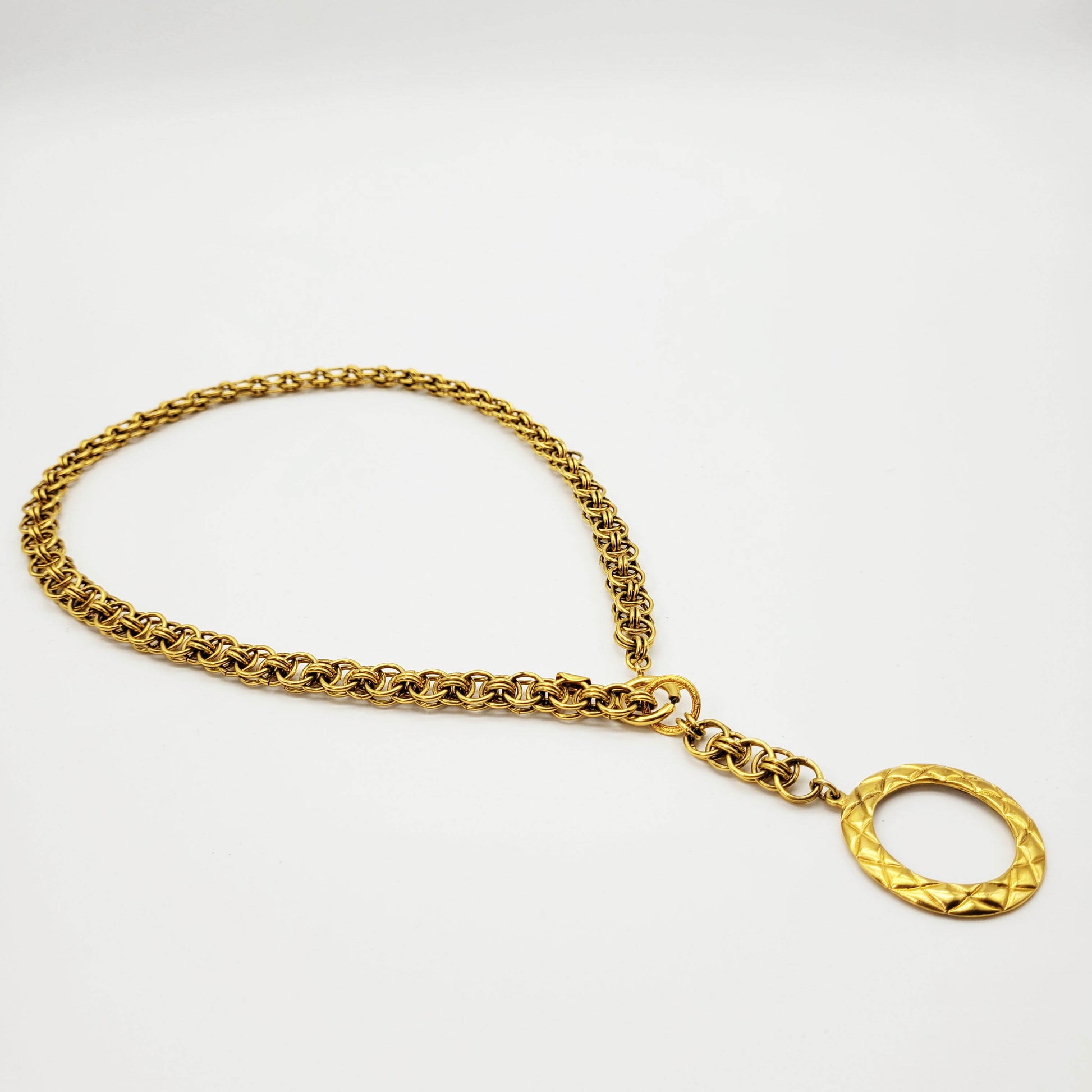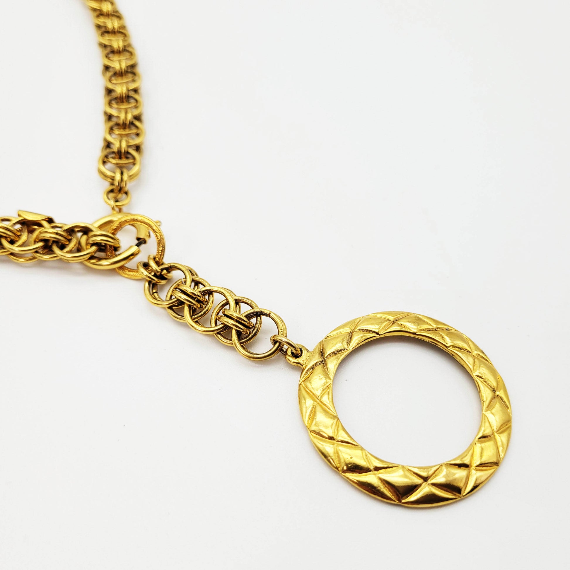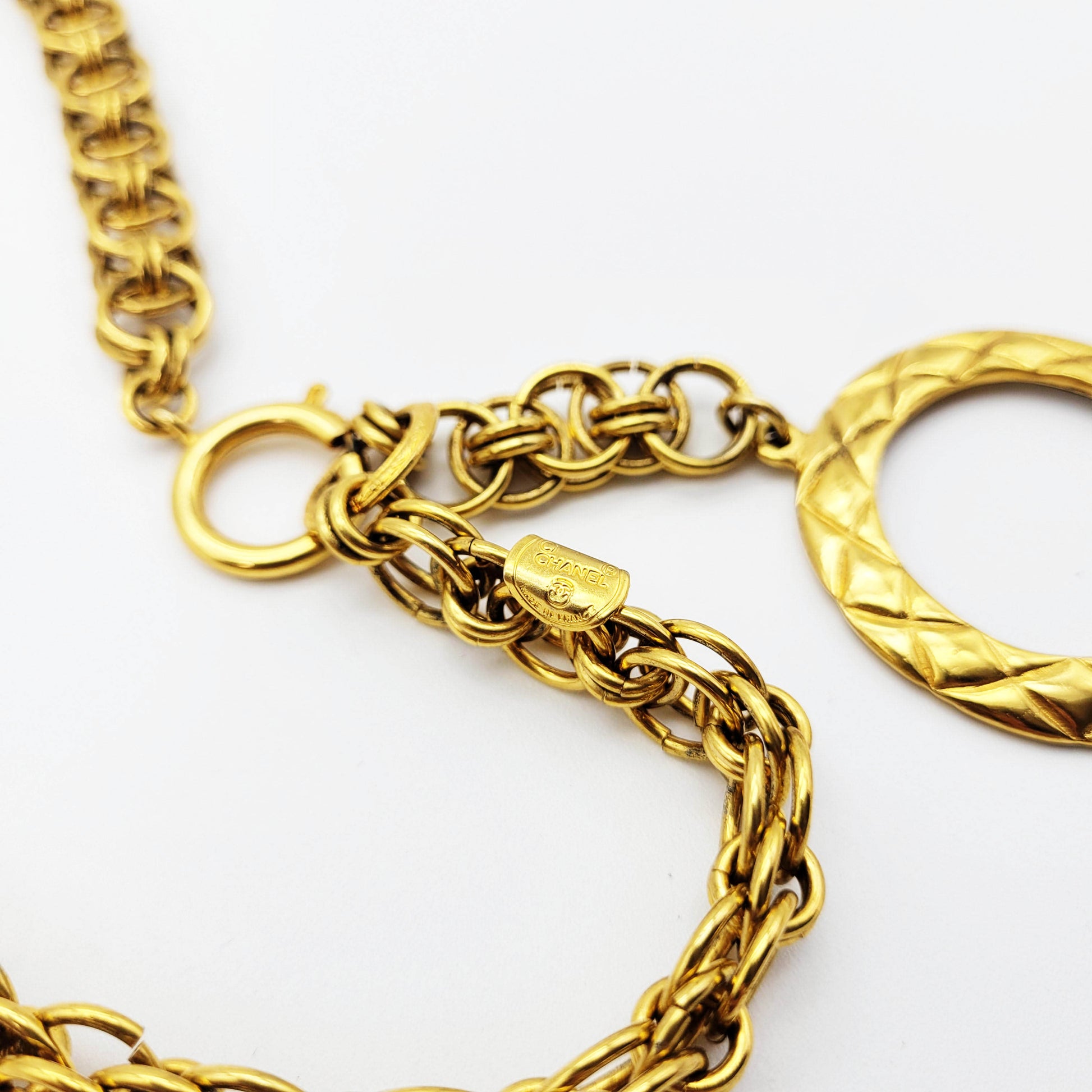 This classic vintage Chanel chain necklace features goldtone color. You can use it either as a long necklace or a belt. Be creative with it and let its simple design embellish your outfit.