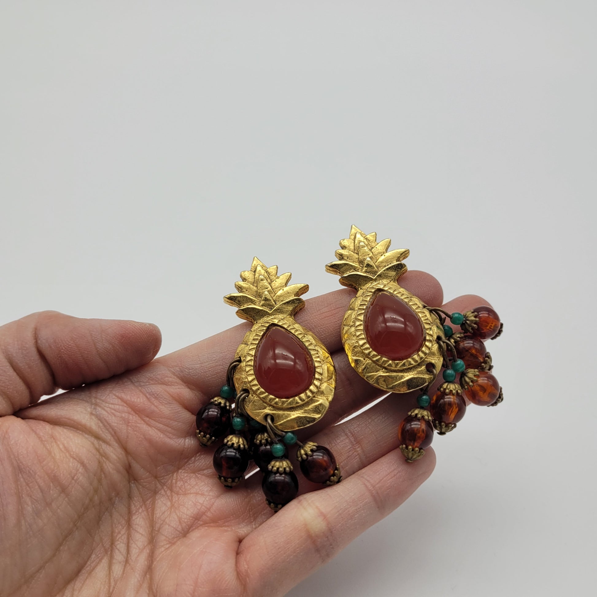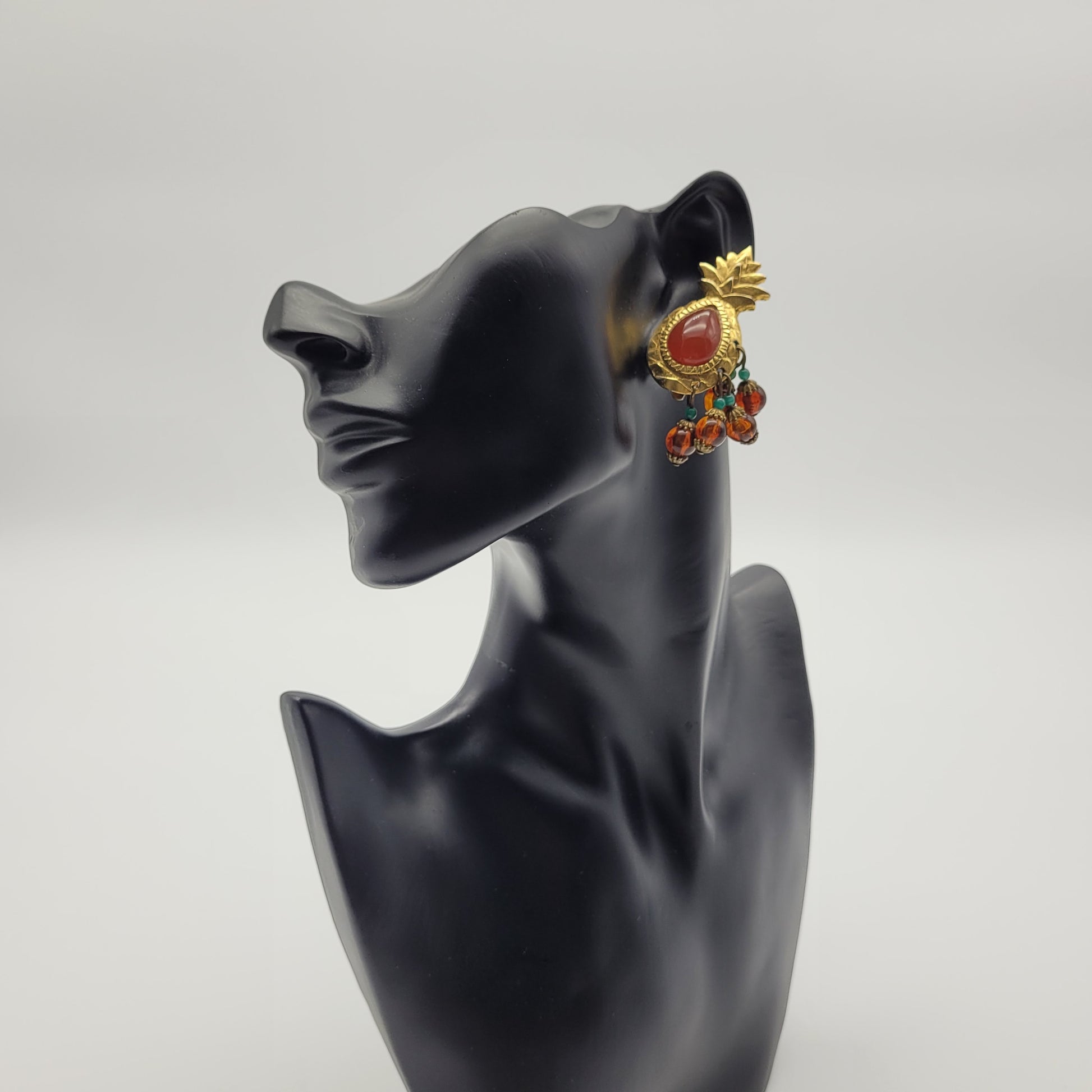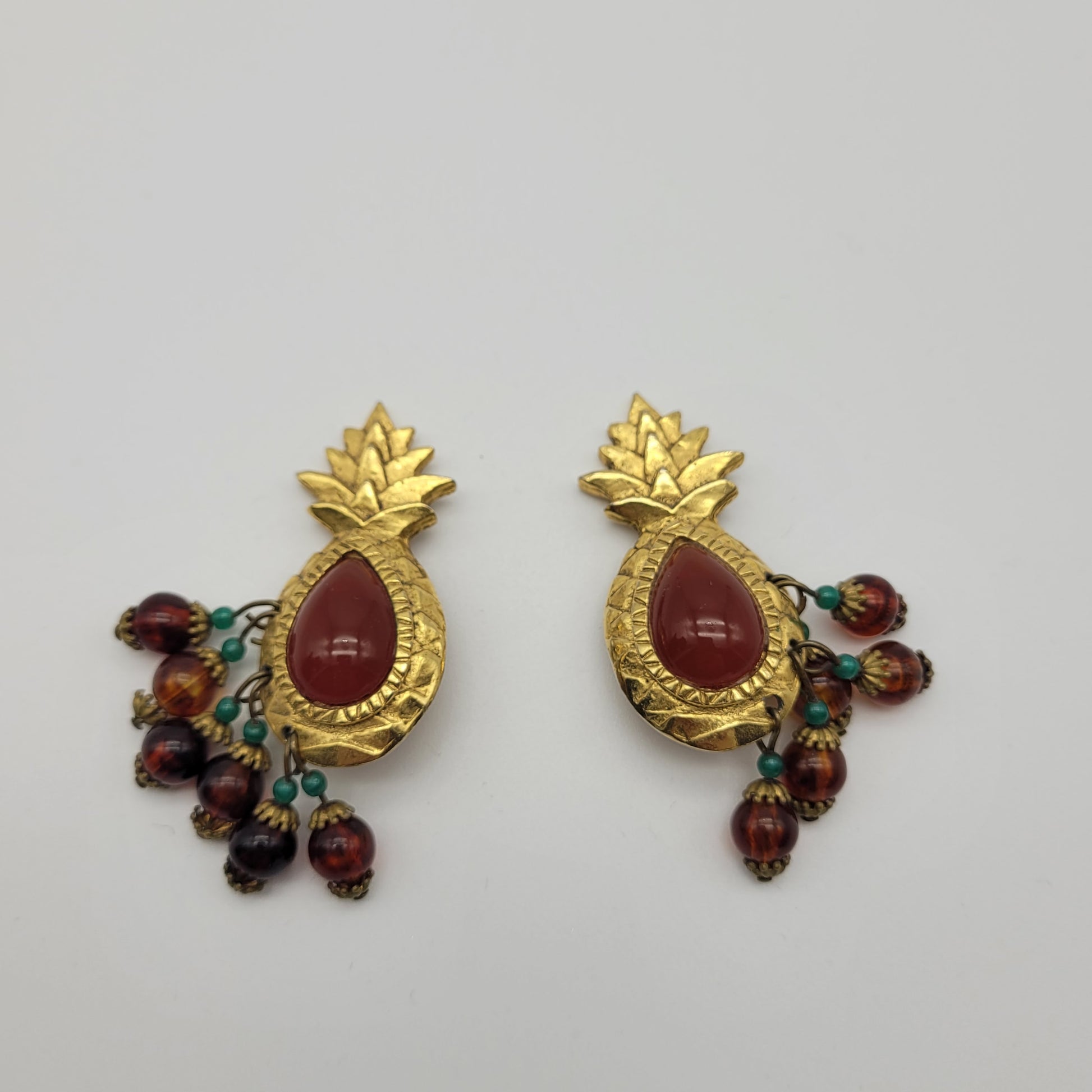 Looking for unique earrings? Check out these stunning vintage clip on earrings from Abbey Road! With their beautiful goldtone and deep red (dark brown) colors, they are the perfect addition to any summer wardrobe. The pineapple shape design will add some fun to your outfit. They will turn heads for sure and you'll love them!