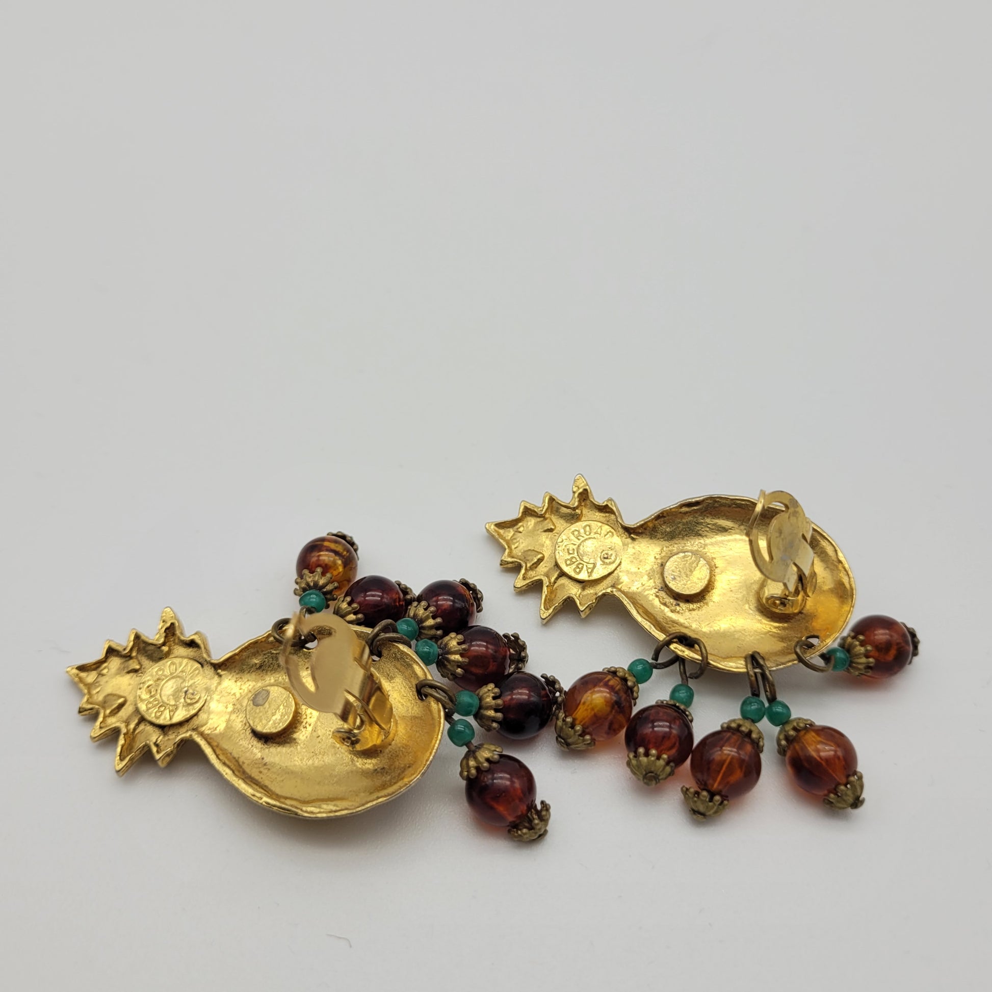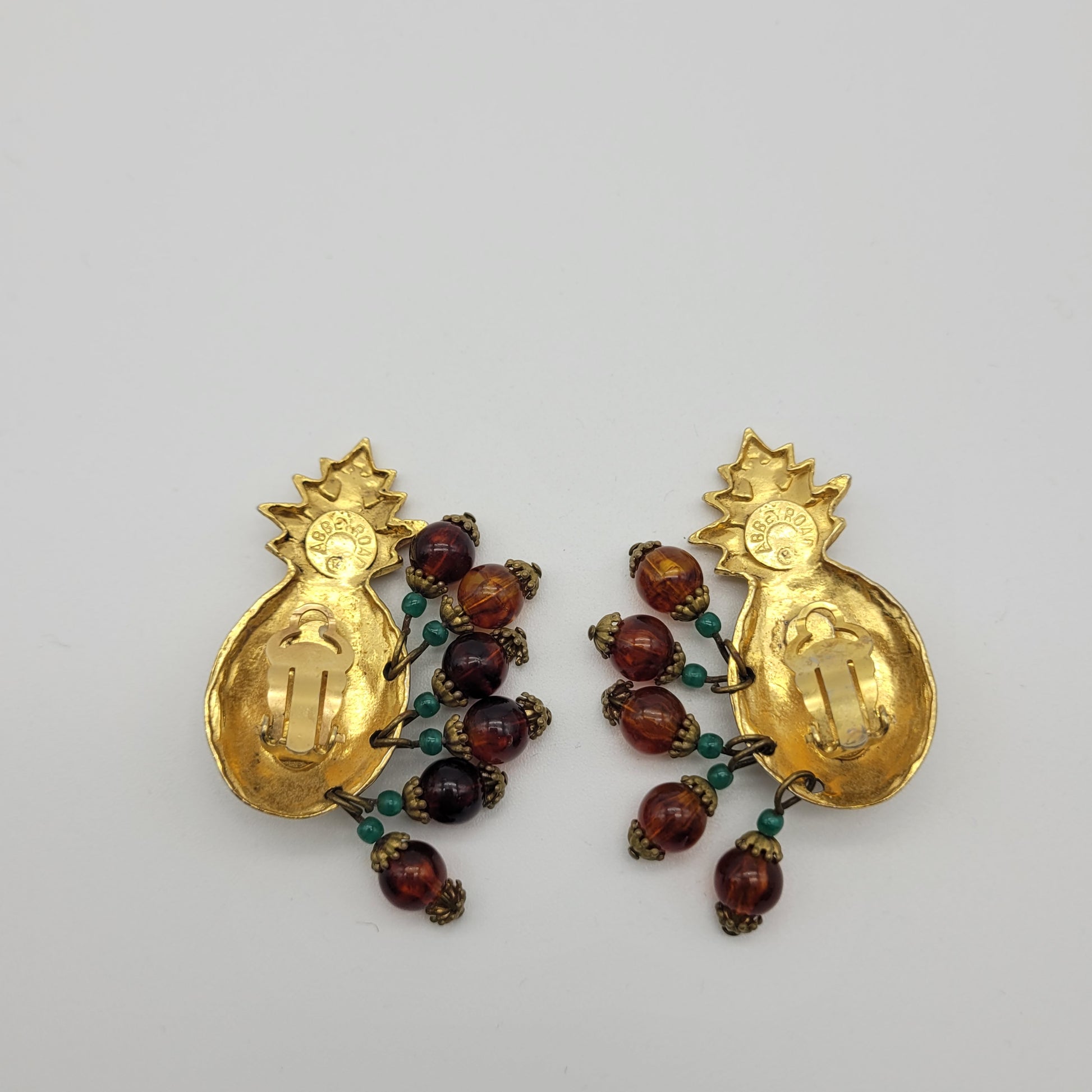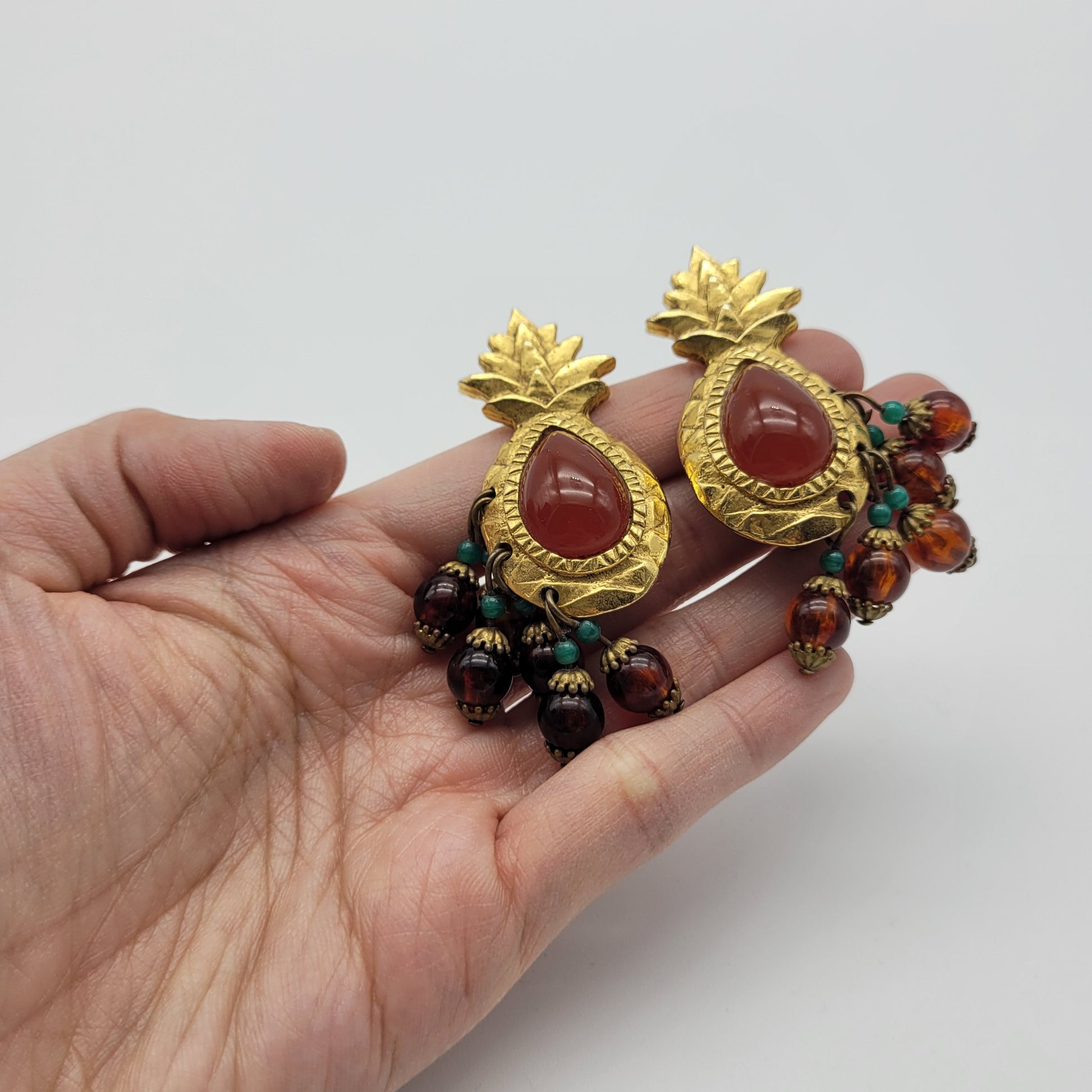 Looking for unique earrings? Check out these stunning vintage clip on earrings from Abbey Road! With their beautiful goldtone and deep red (dark brown) colors, they are the perfect addition to any summer wardrobe. The pineapple shape design will add some fun to your outfit. They will turn heads for sure and you'll love them!