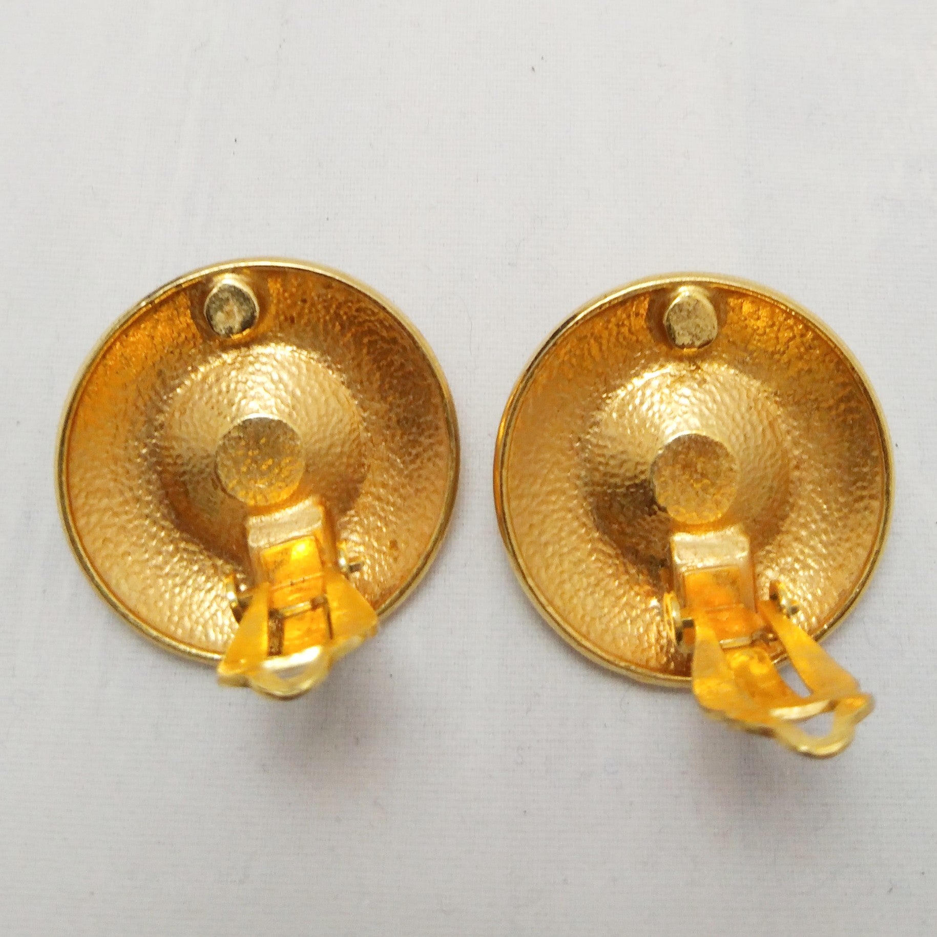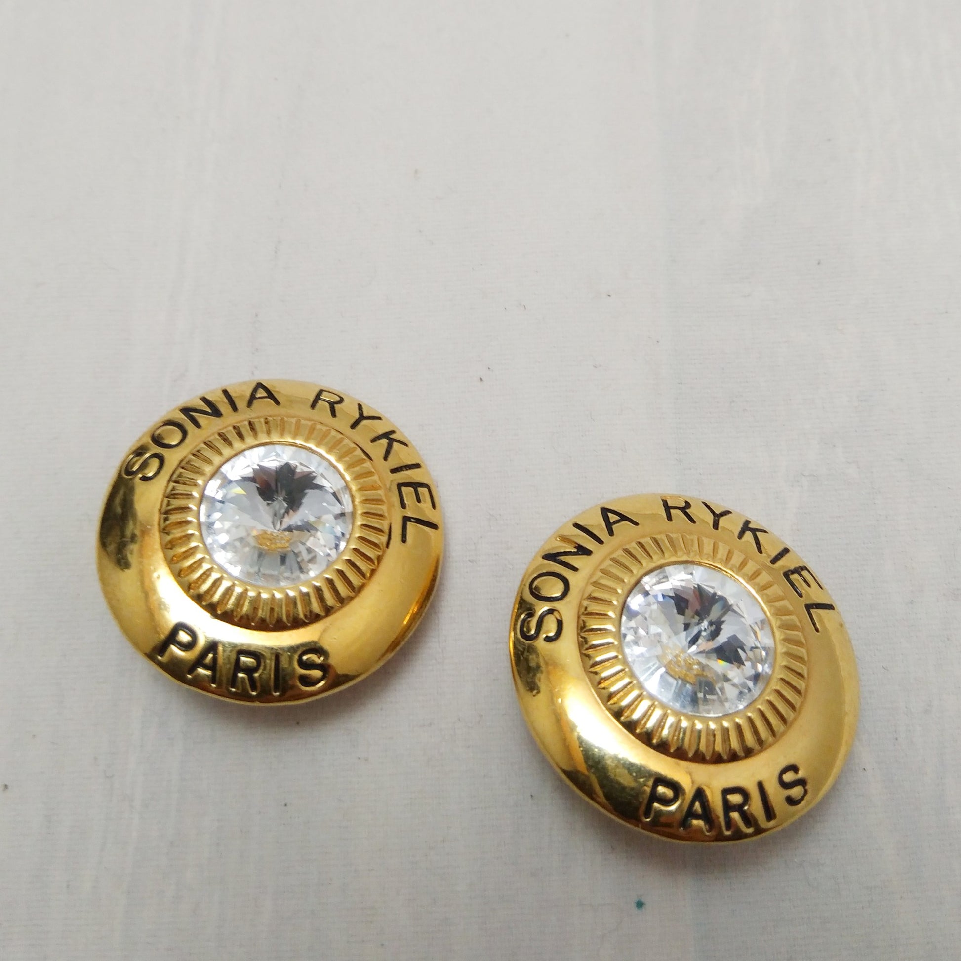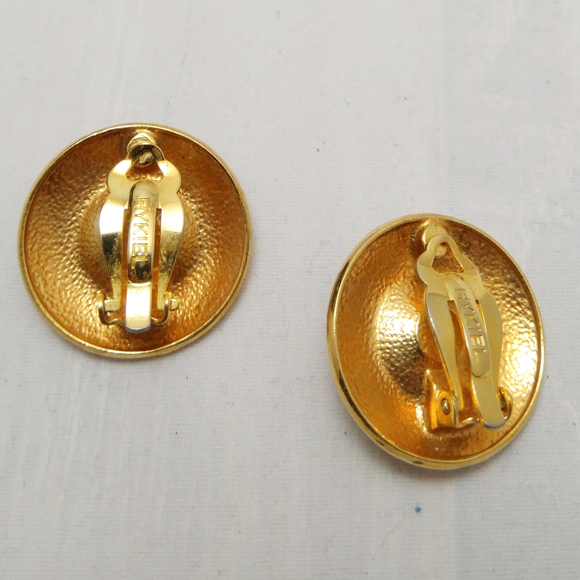 Introducing these original vintage clip-on earrings from the renowned fashion house Sonia Rykiel. These vintage costume earrings feature a classic round shape that can complement any outfit.