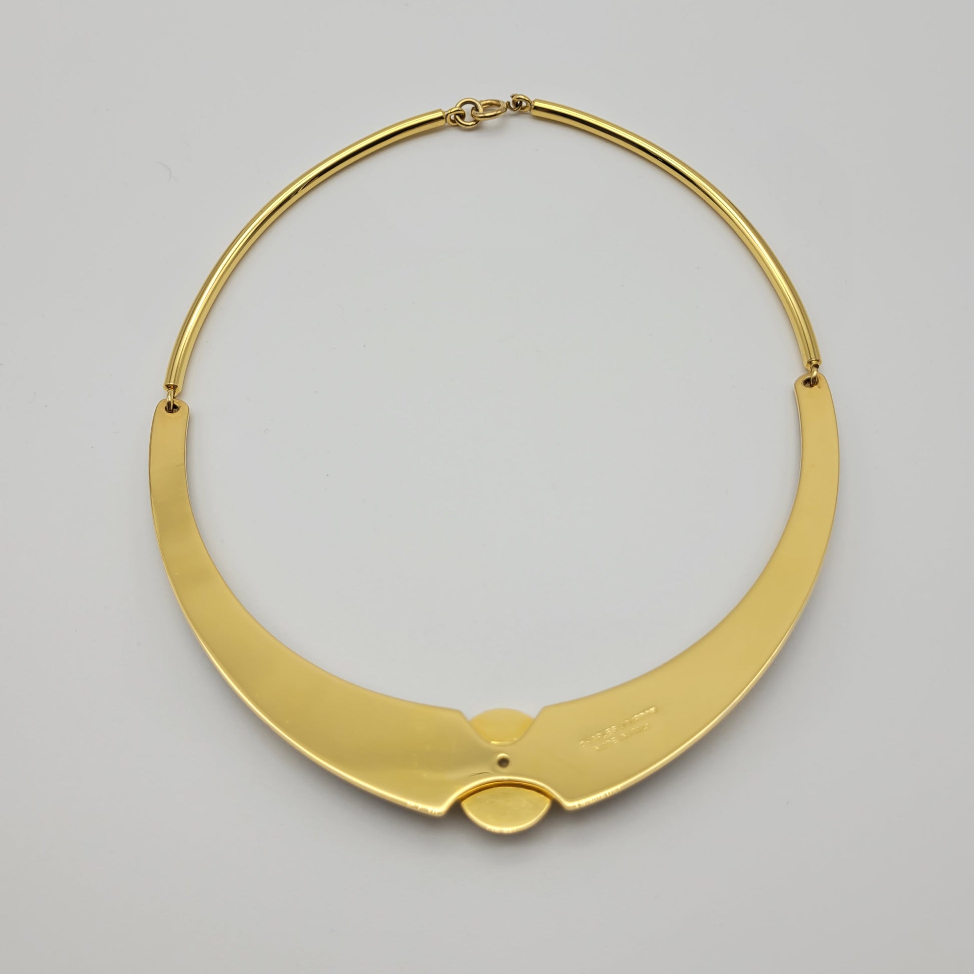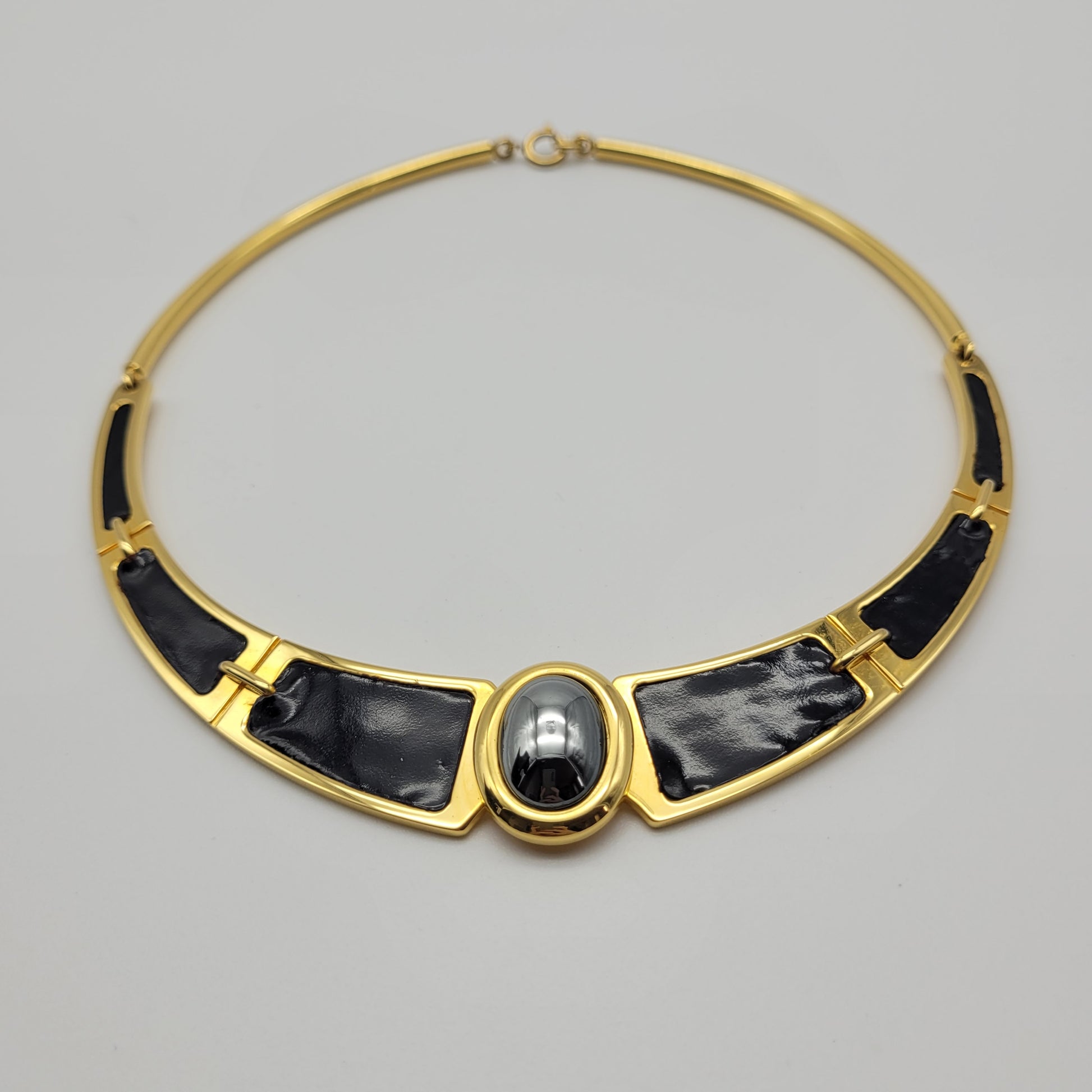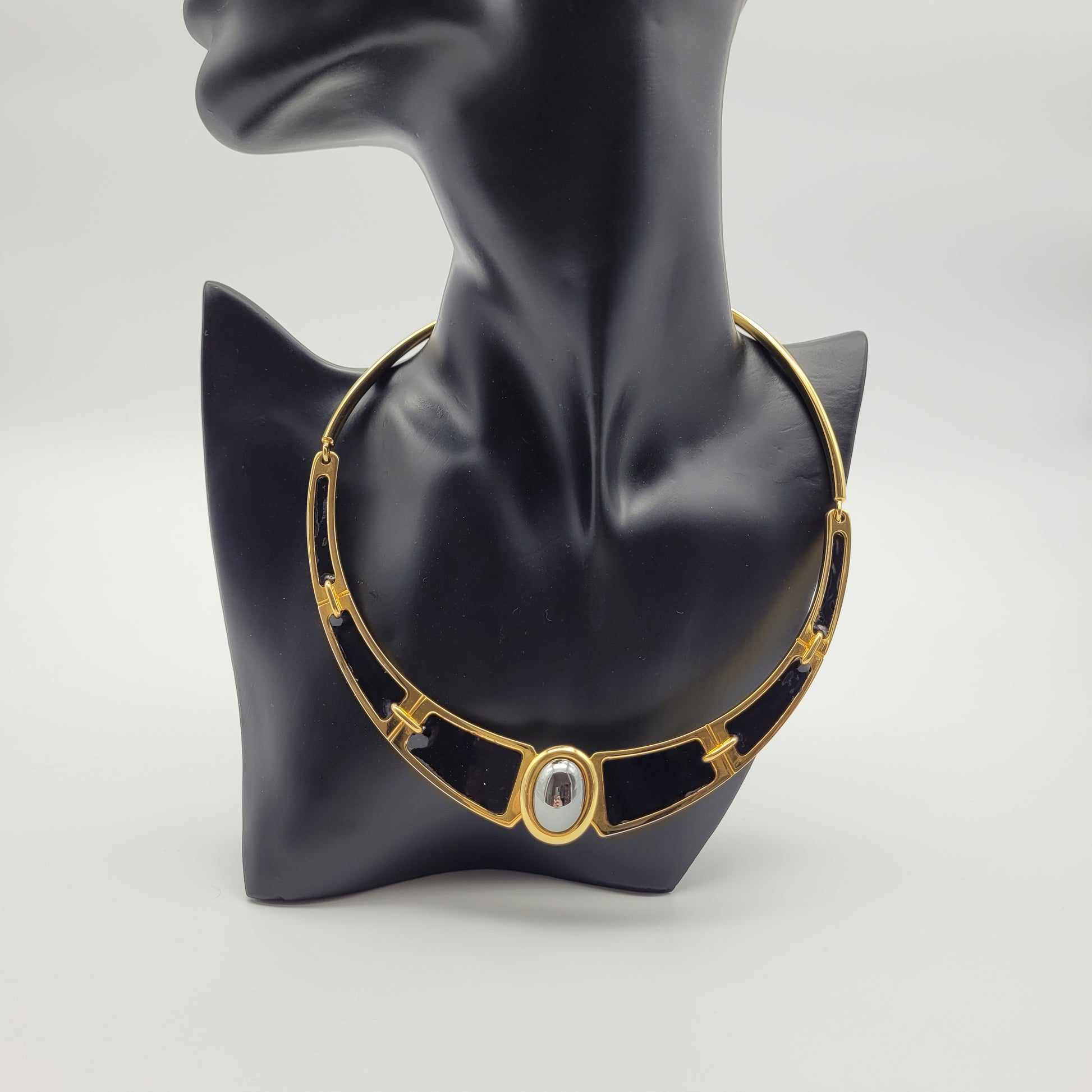 Introducing the vintage collar necklace from Charles Jourdan! This unique necklace features a simple collar design in goldtone and black colors. This stunning piece of jewelry will make sure to turn heads.