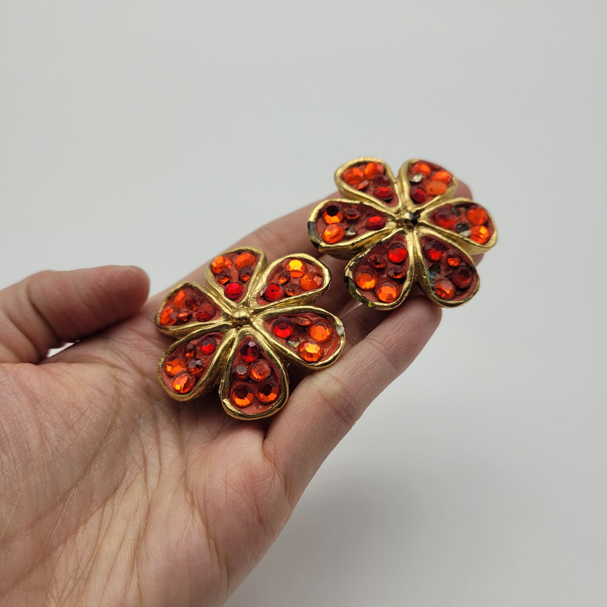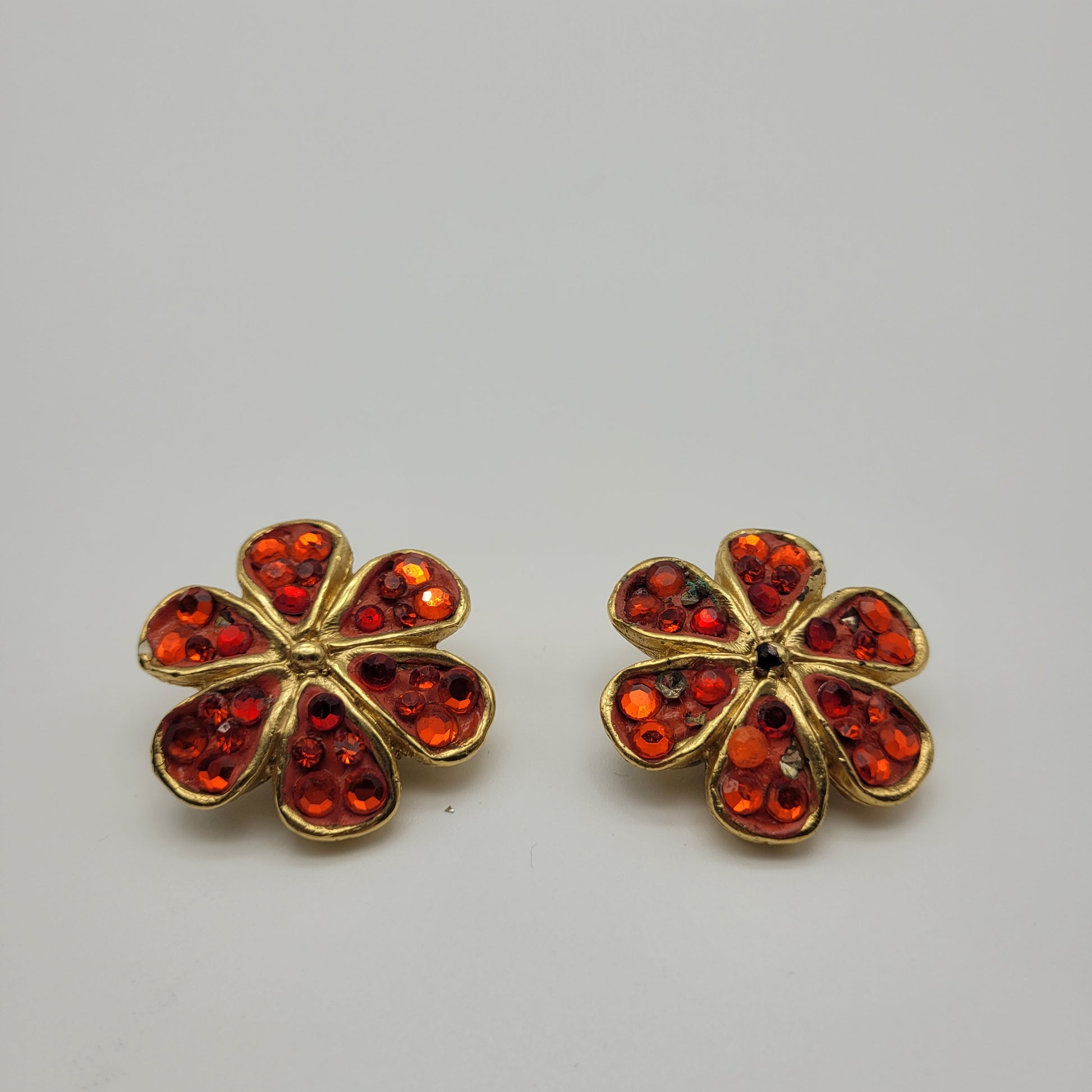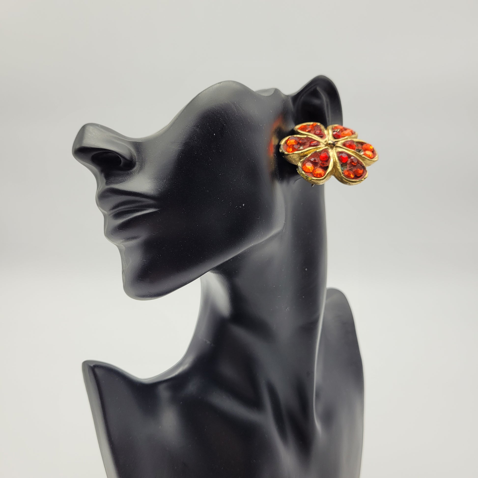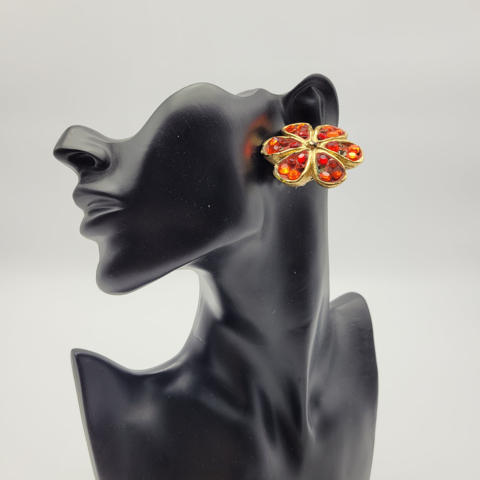Make a statement this summer with these stunning vintage flower earrings from Jacky De G. These vintage clip on earrings are a great choice for any occasion. These unique earrings are crafted from gold-tone metal and feature vibrant red and orange rhinestones. They will bring the perfect touch of color to your look. Whether you’re having an outdoor party or rocking a night out on the town, these earrings will be sure to turn heads!