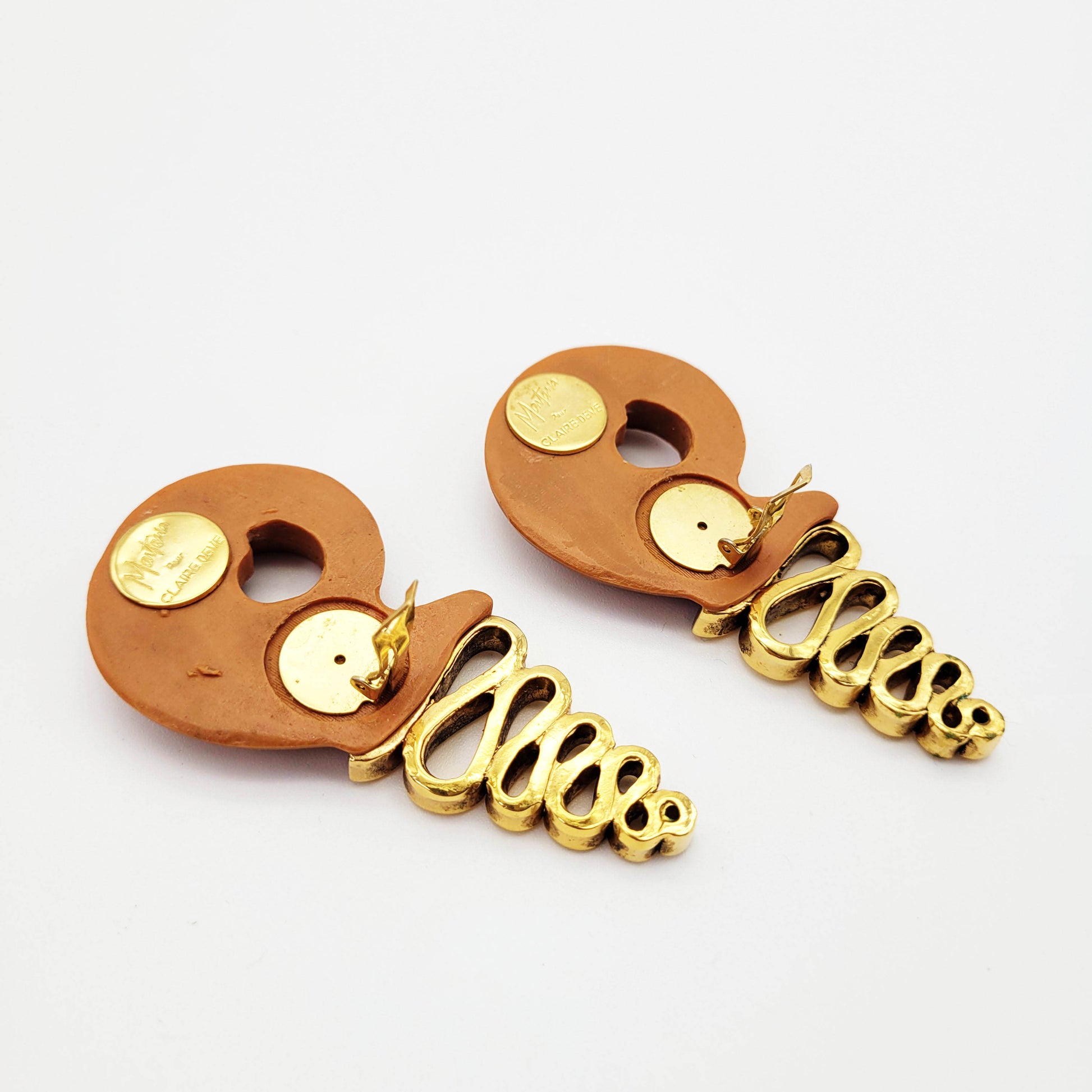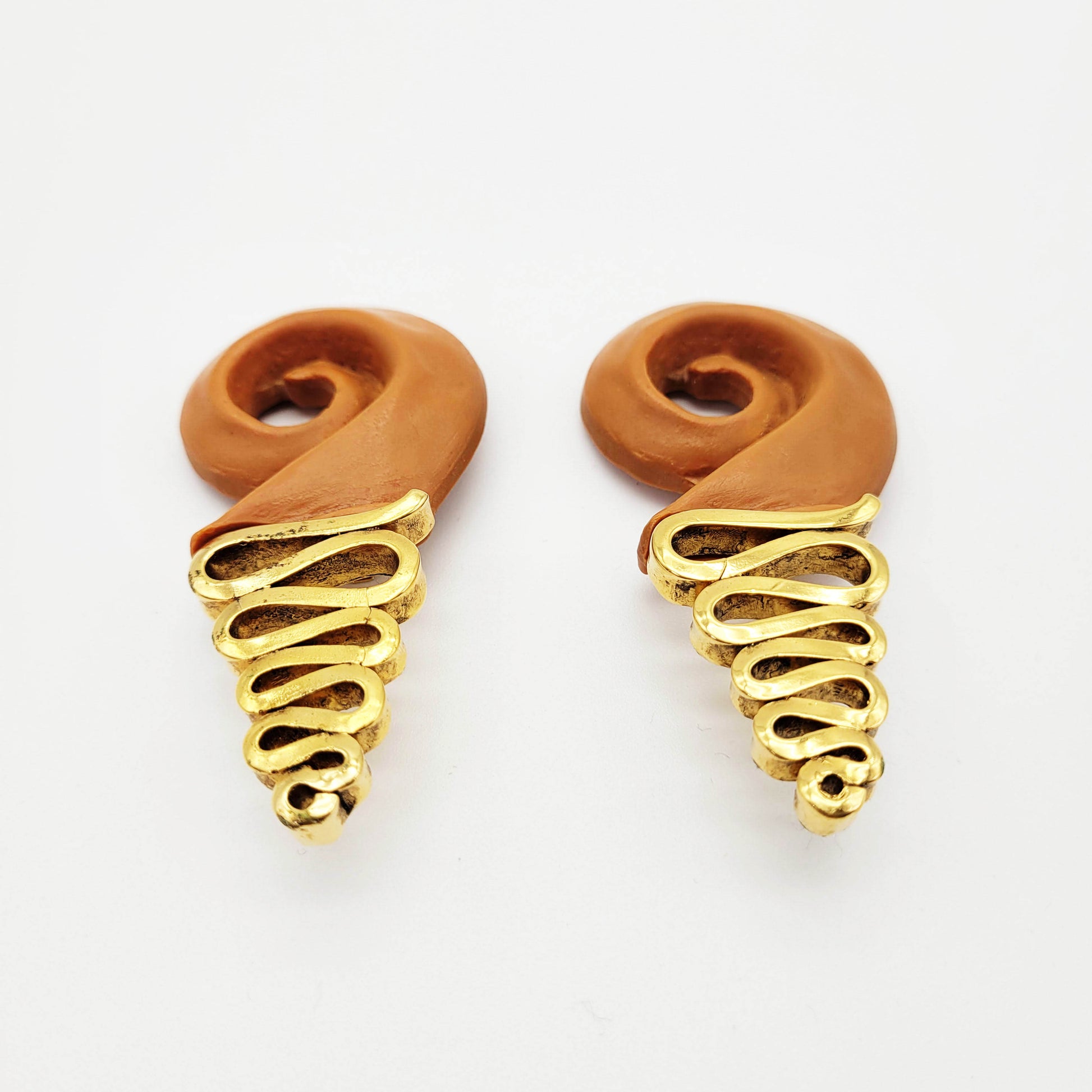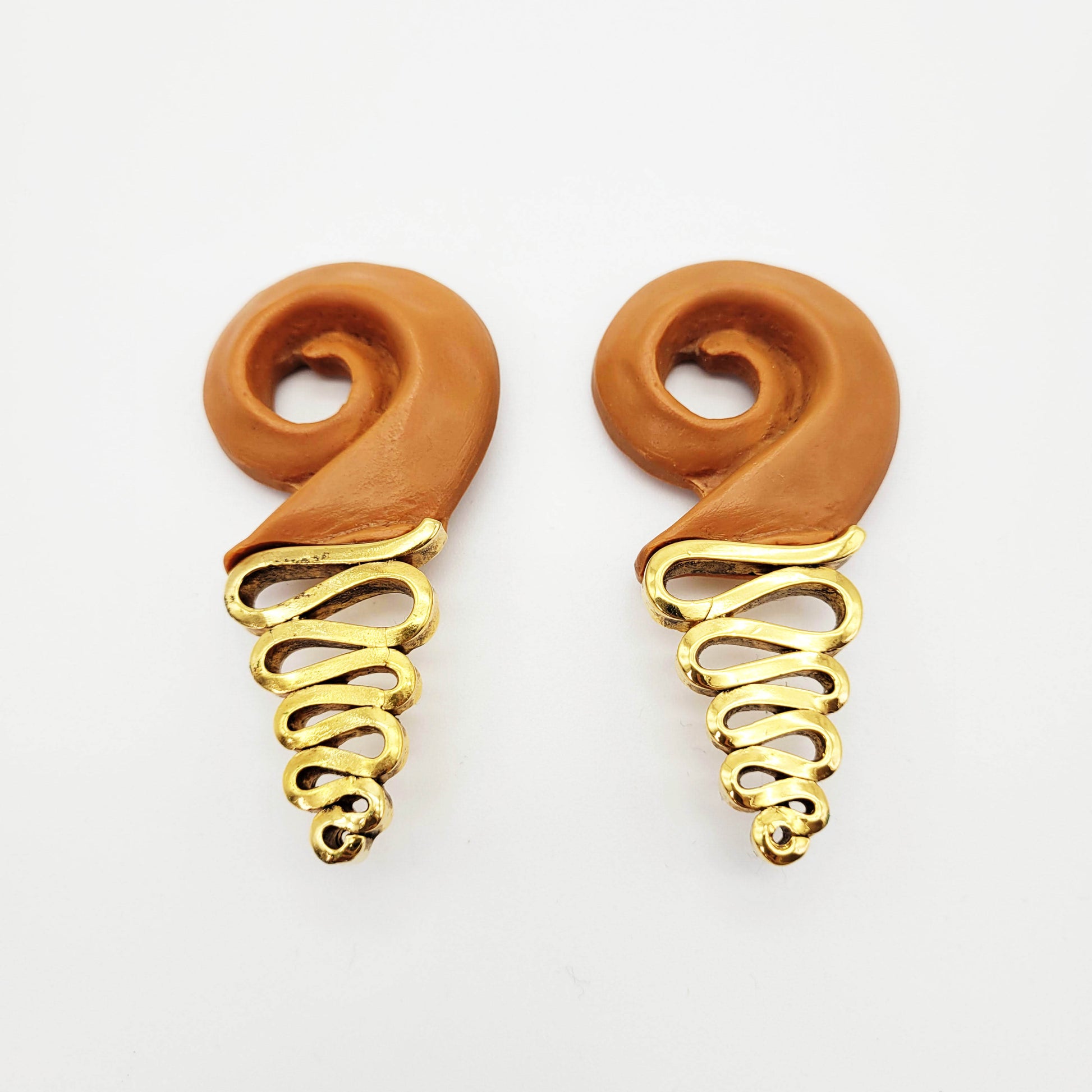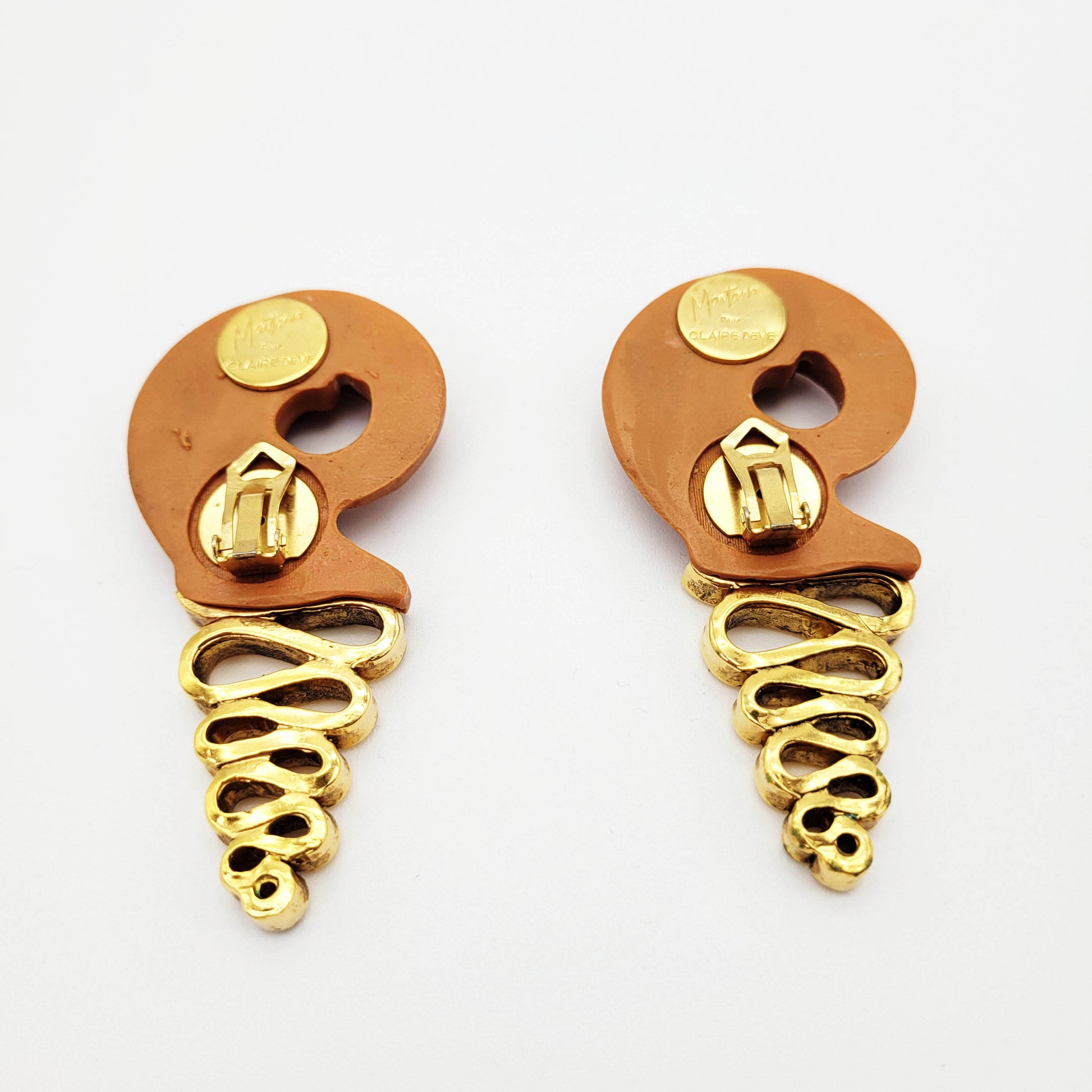 Add a fun touch to your look with these vintage oversized earrings from Claire Deve! Crafted with goldtone metal and brown hard resin, these earrings have a unique ice cream cone-like design and offer a unique statement to any outfit. Get ready to be the center of attention!