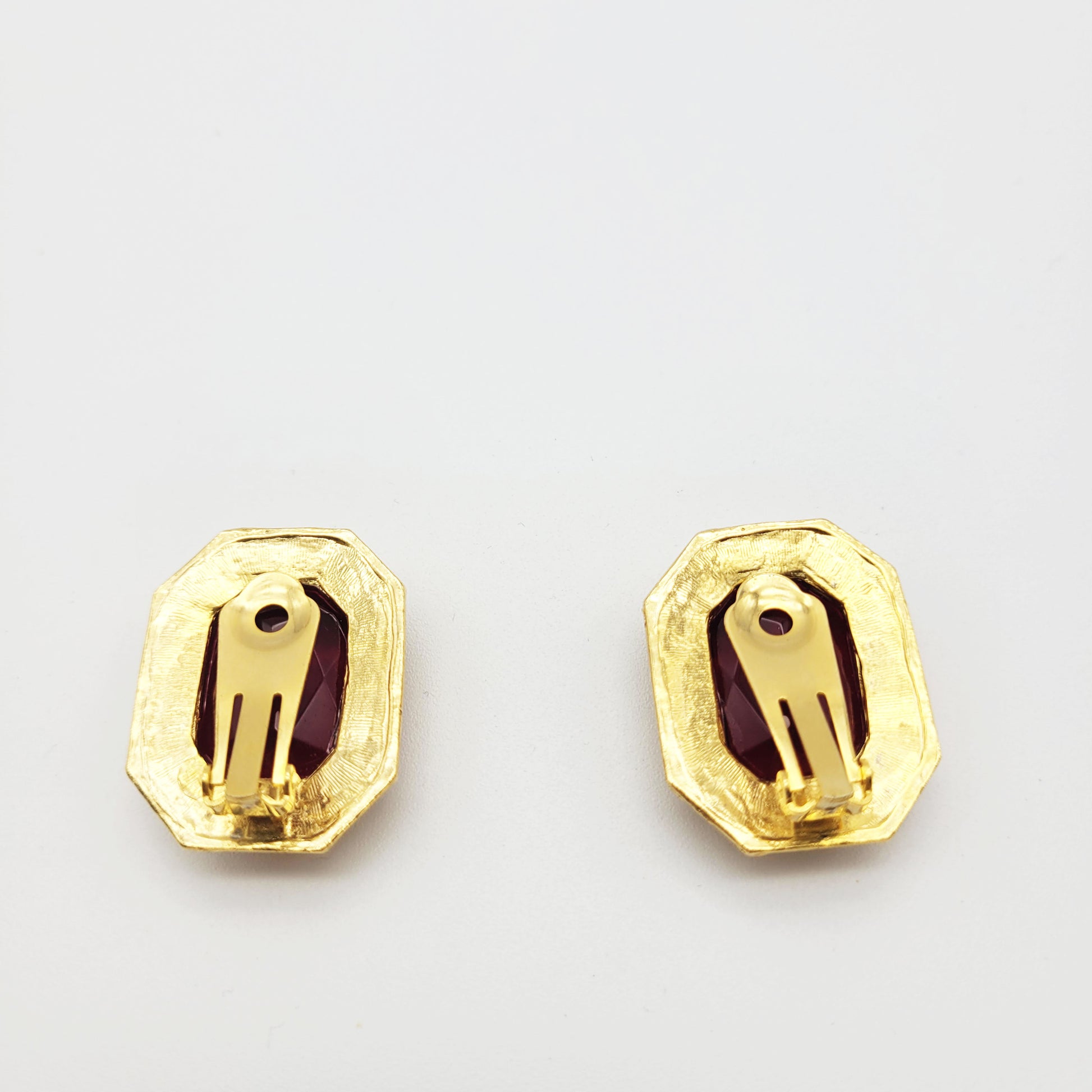 Check out these outstanding vintage clip-on earrings from France. The design is simple but the size and the dark red color of the big rhinestones will make you stand out from any crowd.