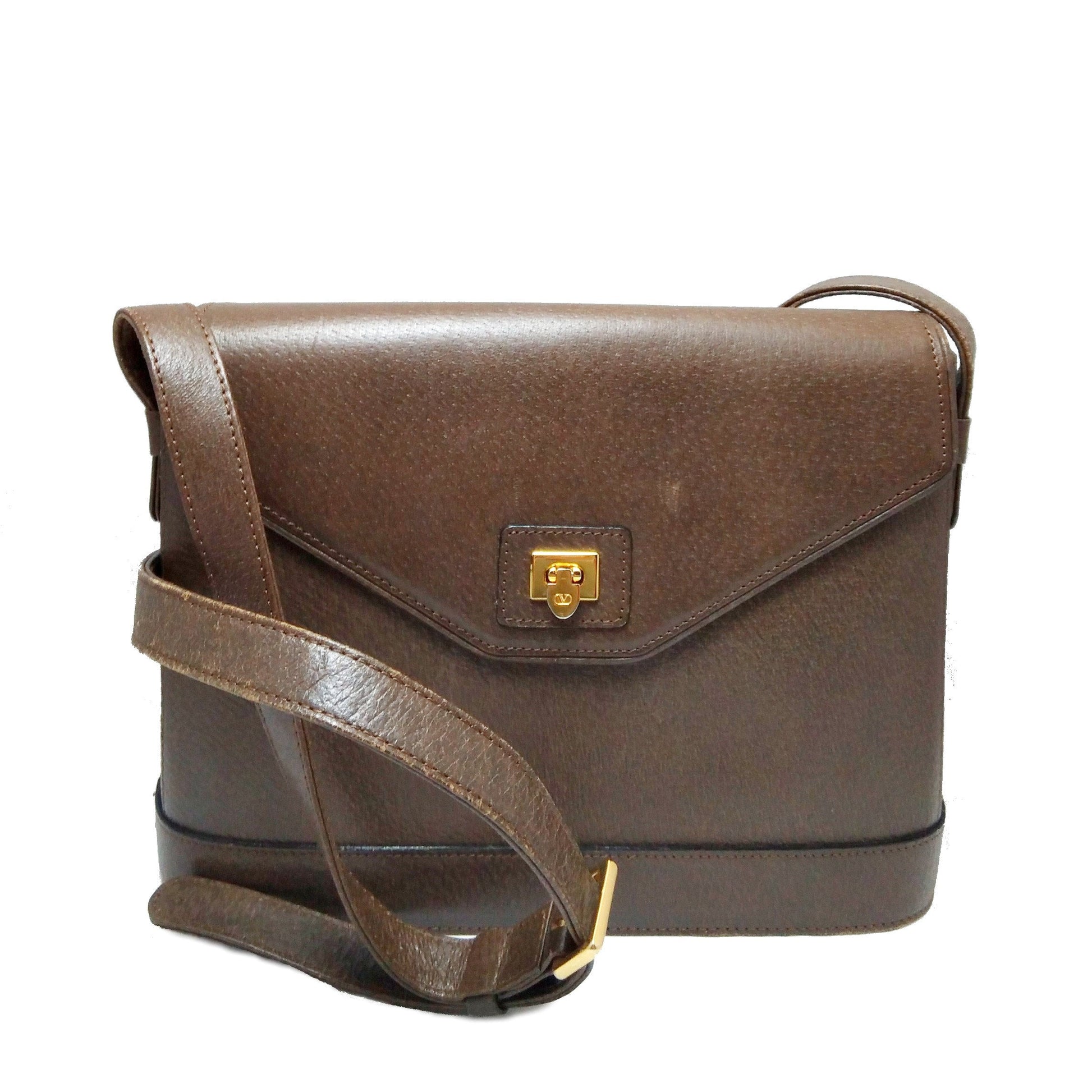 This authentic Valentino Garavani crossbody bag is perfect for the fashionista on the go. Its sturdy box shape and vintage brown leather give it a classic look that will never go out of style. The zipped pocket inside and at the back of the bag keep your belongings safe and secure while you're on the move.