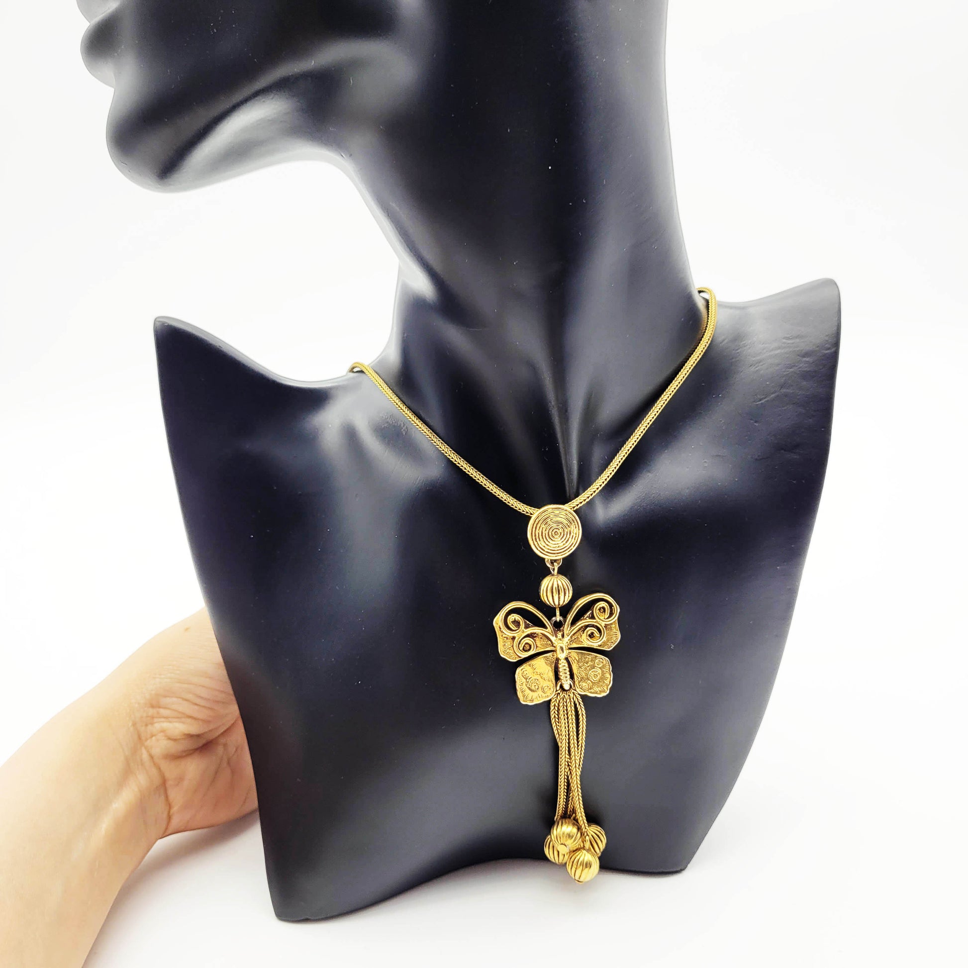 This rare vintage Yves Saint Laurent pendant necklace features a gorgeous butterfly shape. This unique necklace has a simple but catchy design. This vintage Yves Saint Laurent necklace can go with any outfit to create a twist in your style.