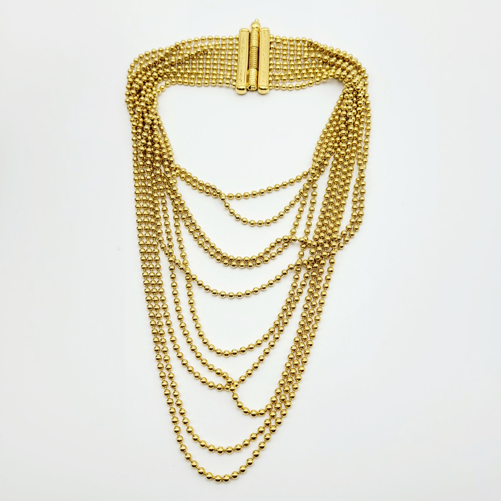 This gorgeous vintage YSL necklace is a very unique jewelry. This women necklace features 10 layers of ball chains. The best thing about this Yves Saint Laurent necklace is that you can be creative and wear it in different ways (as shown in the photos).
