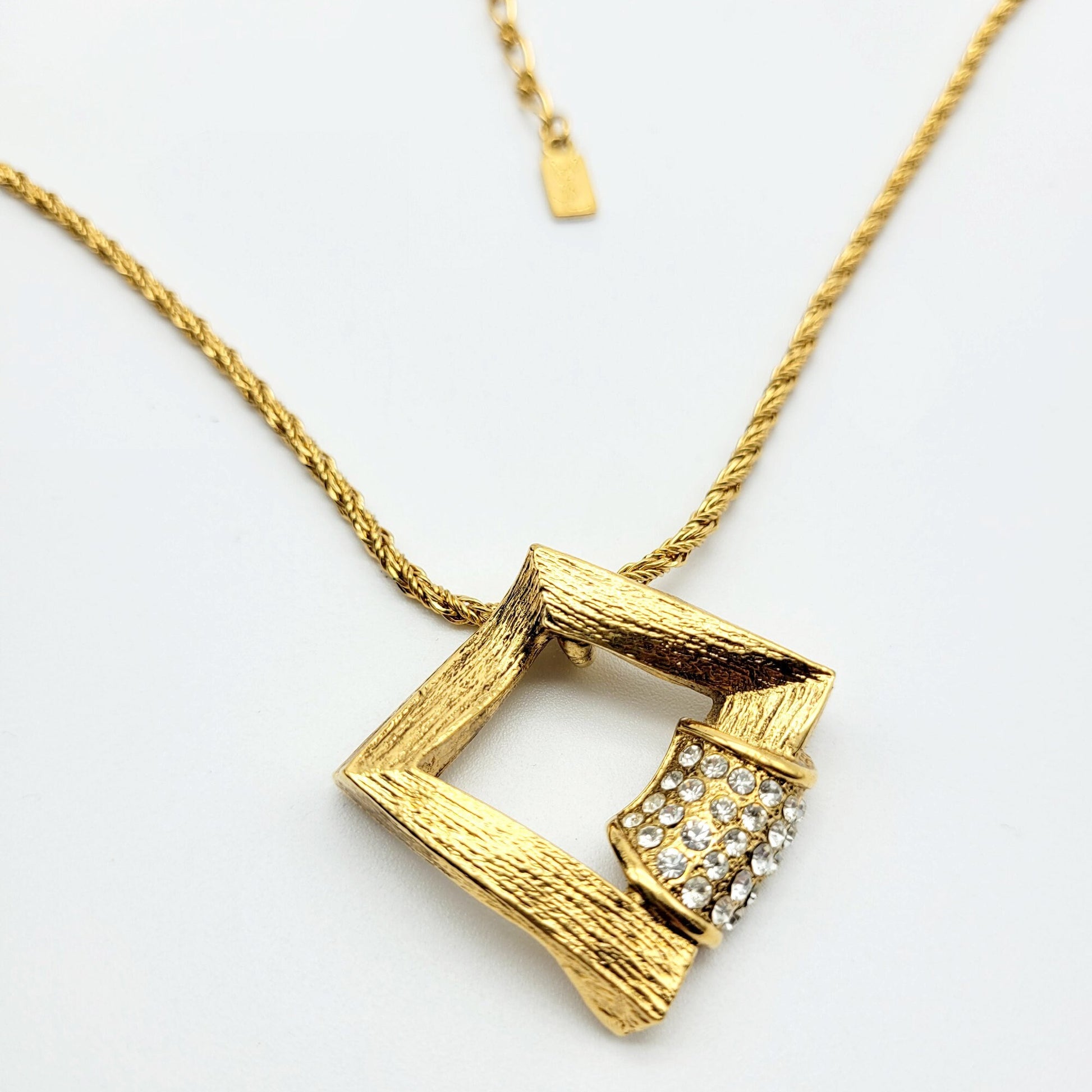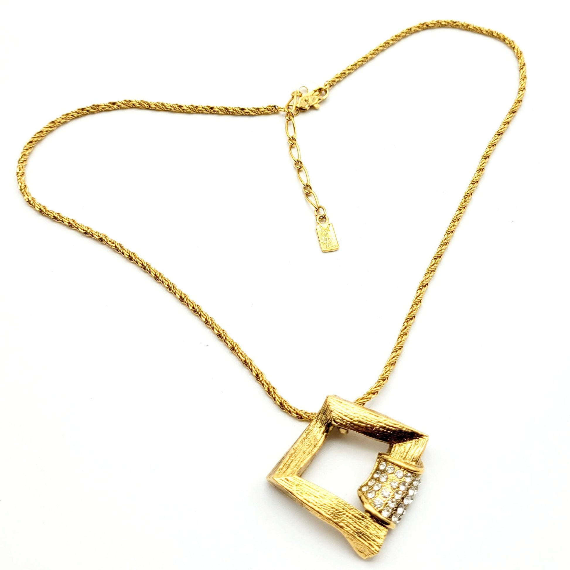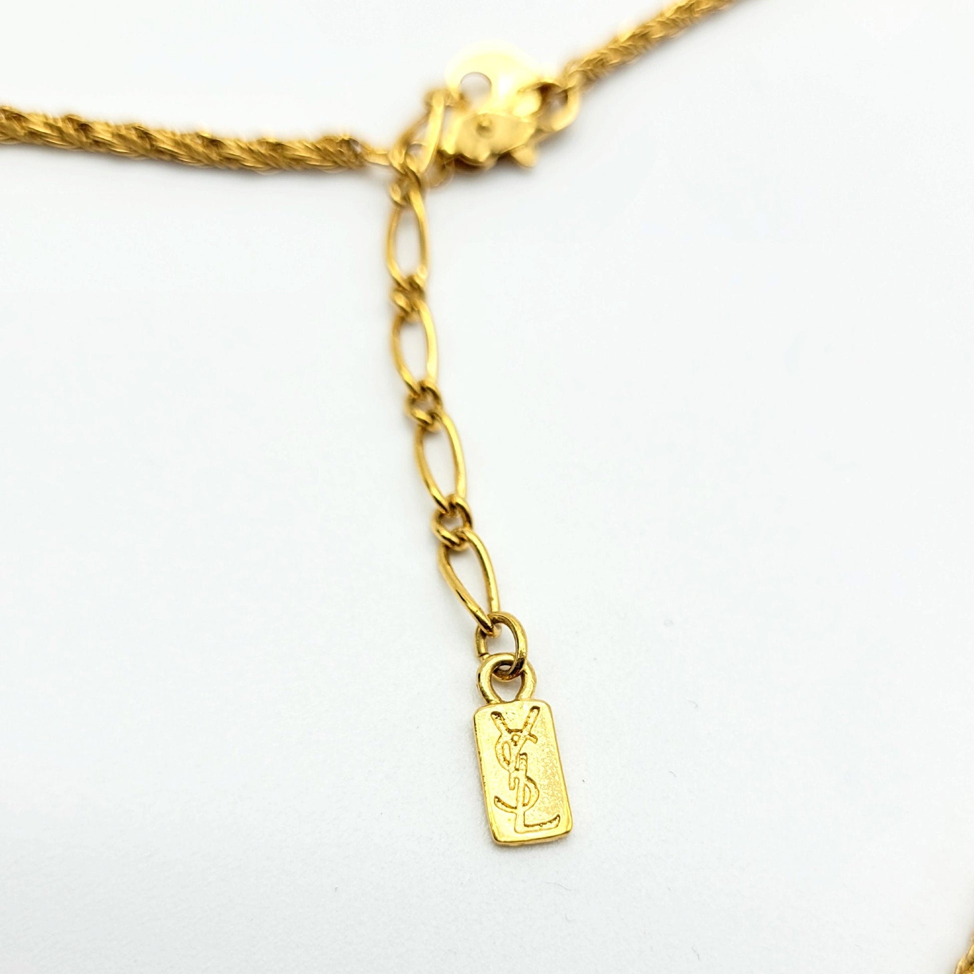 Brand: Yves Saint Laurent, signed YSL Color: Gold-toneMaterial: Gold-tone metal and rhinestonesCondition: Excellent conditionMeasurements: Necklace length 47-53 cm, Height 4.2 cm x Width 4.2 cmAccessories: NonePlease view and enlarge all images.