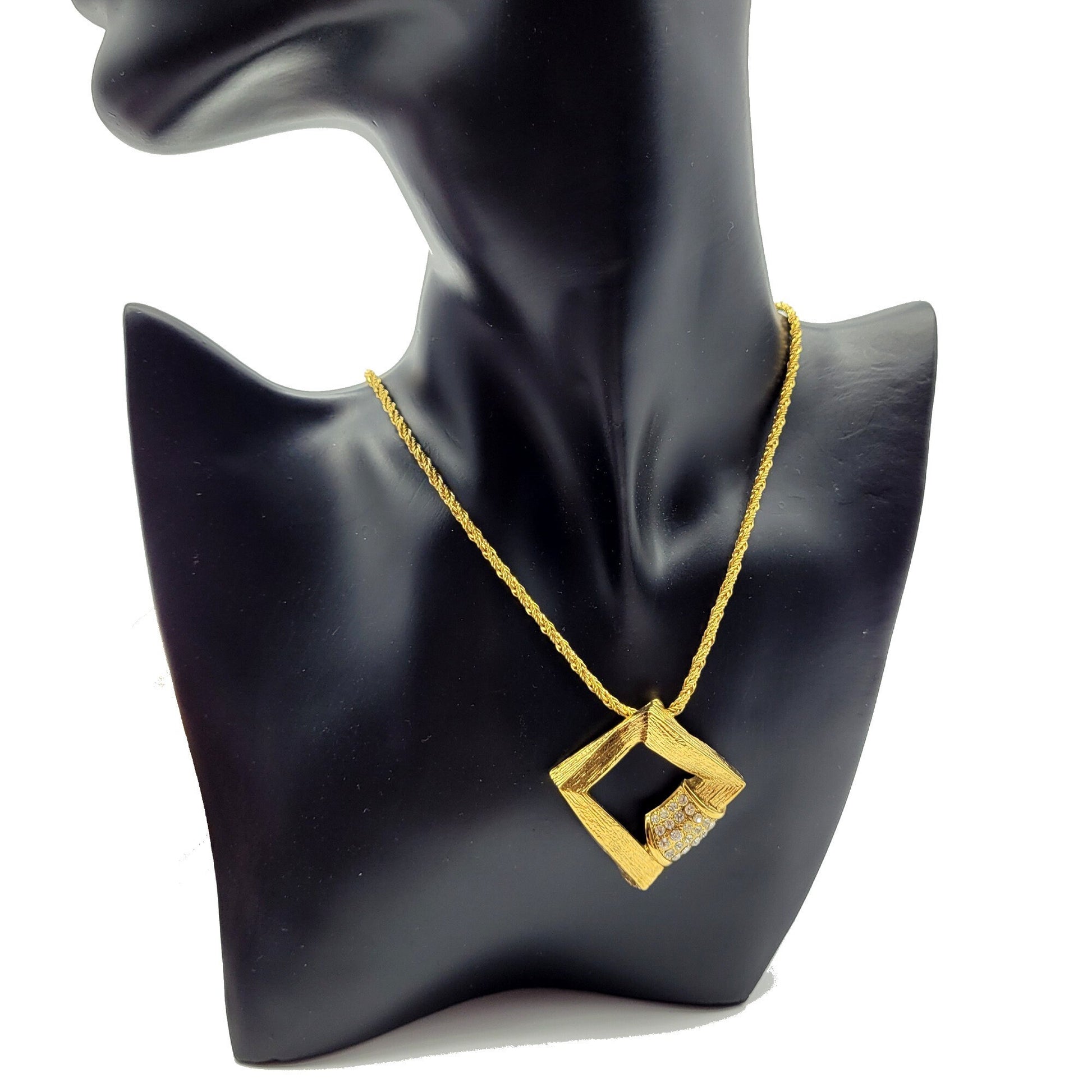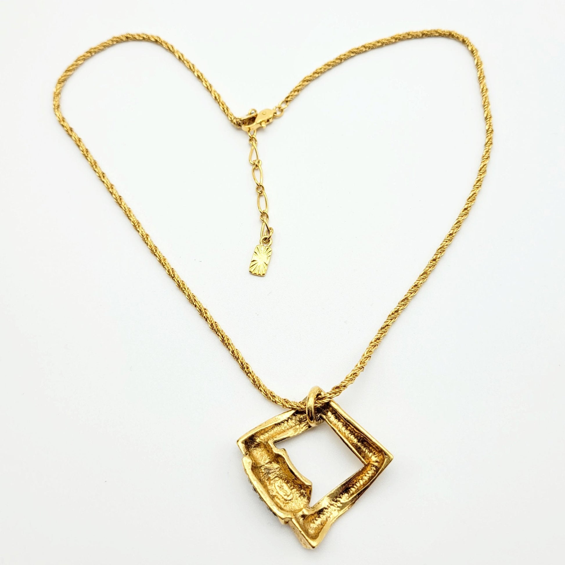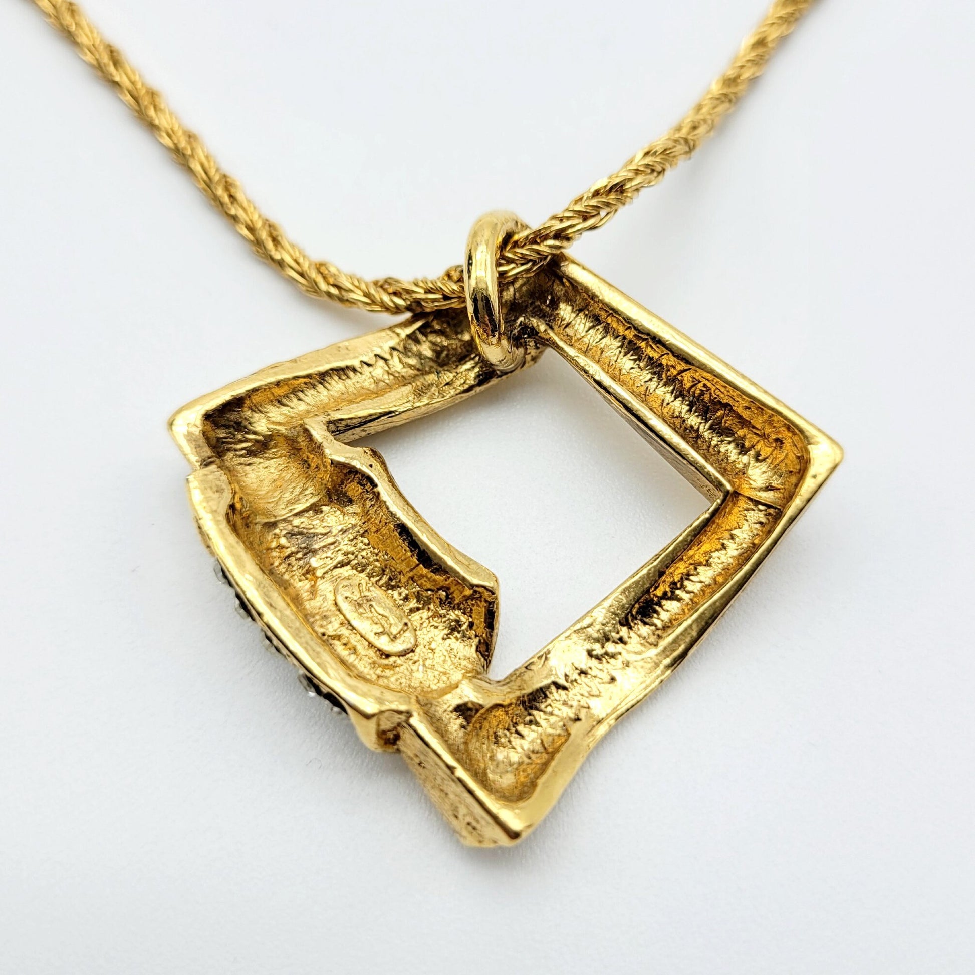 Brand: Yves Saint Laurent, signed YSL Color: Gold-toneMaterial: Gold-tone metal and rhinestonesCondition: Excellent conditionMeasurements: Necklace length 47-53 cm, Height 4.2 cm x Width 4.2 cmAccessories: NonePlease view and enlarge all images.